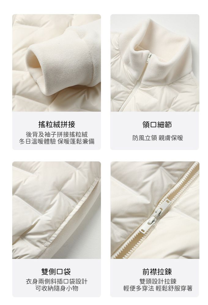 • 90%羽絨拼接搖粒絨,保暖又舒適