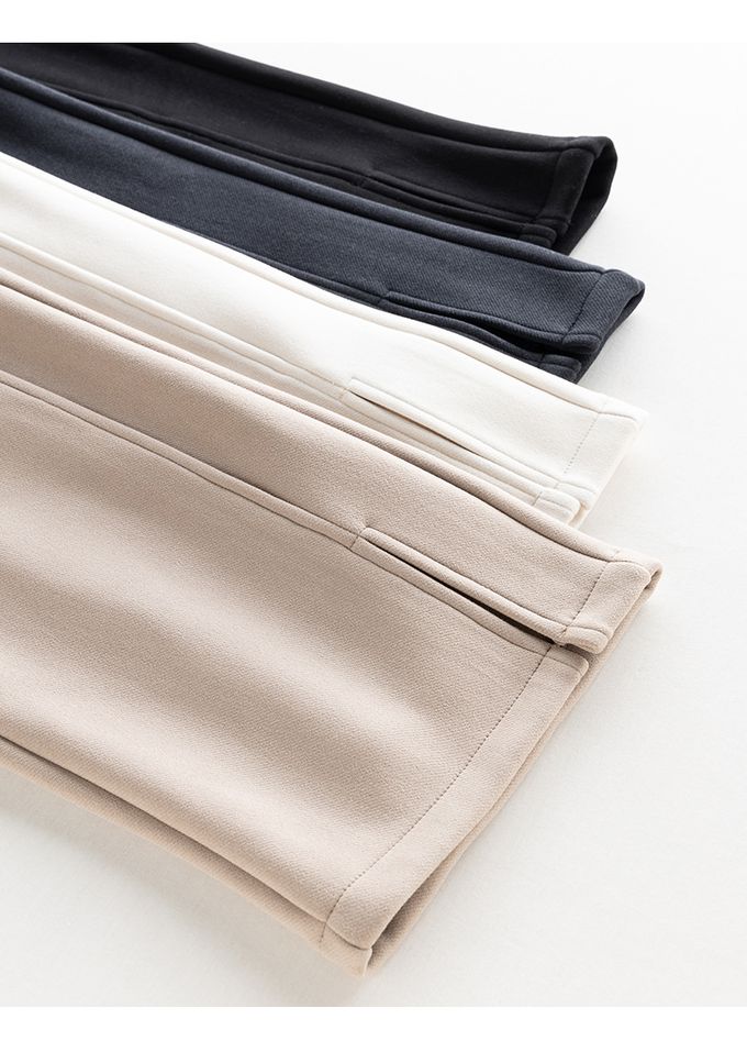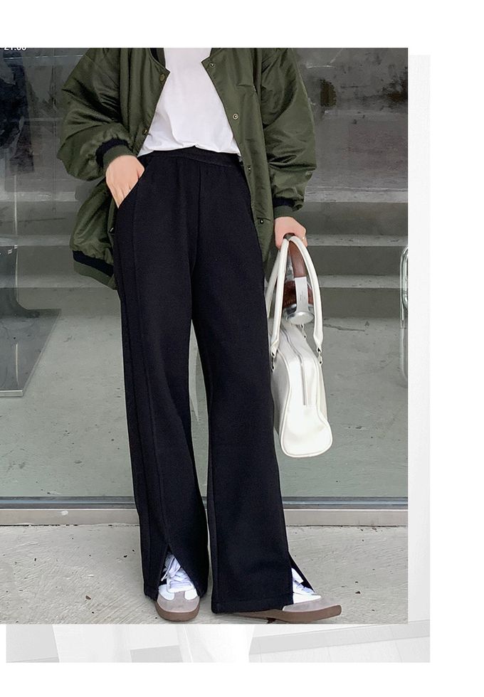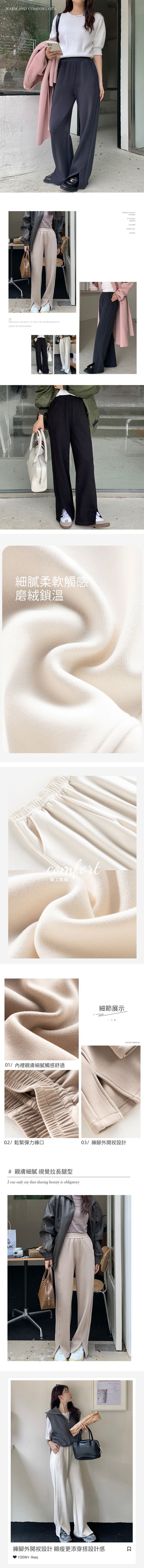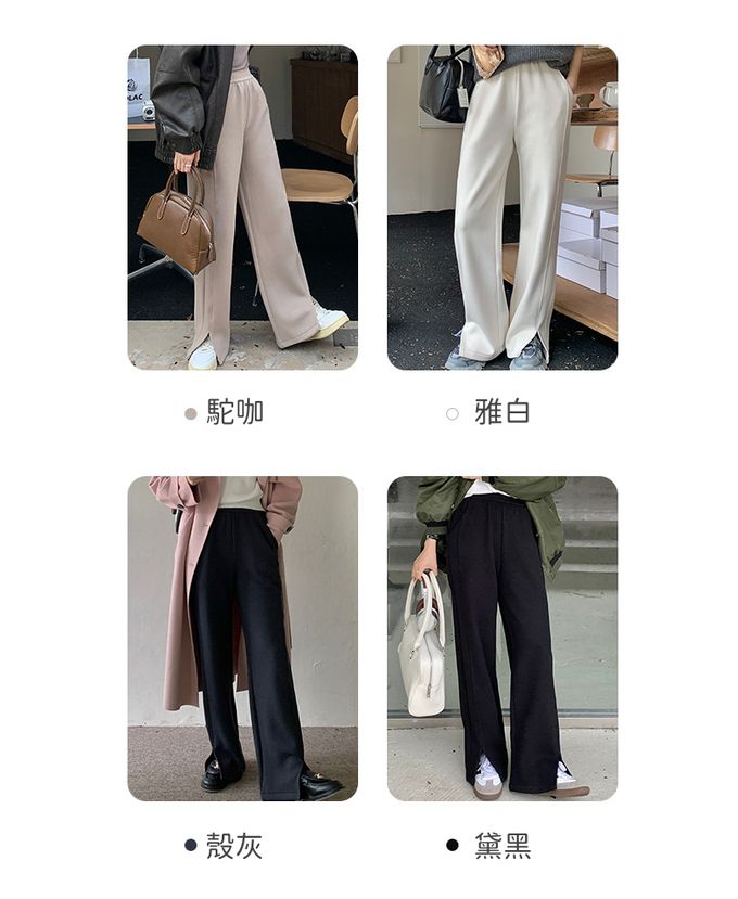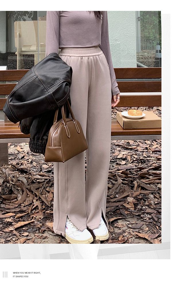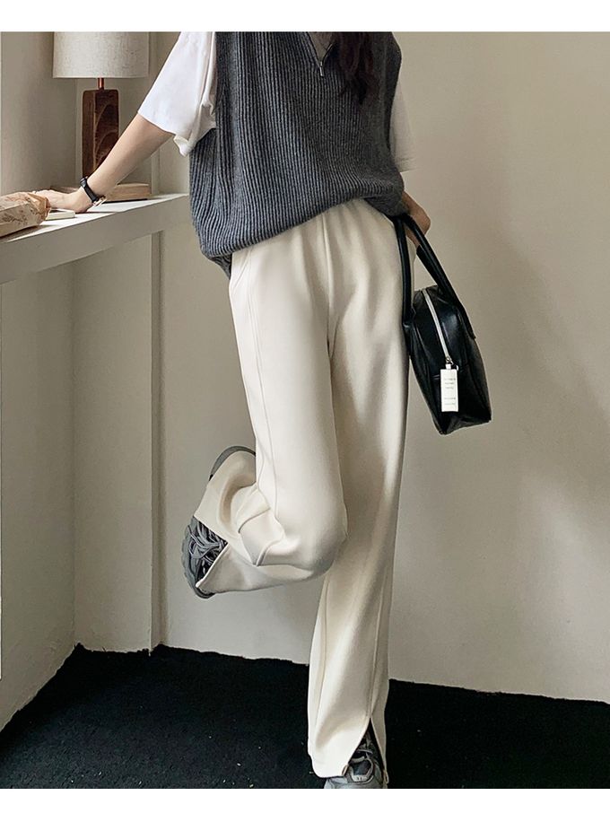 腰鬆緊顯瘦車線開衩長褲-雅白