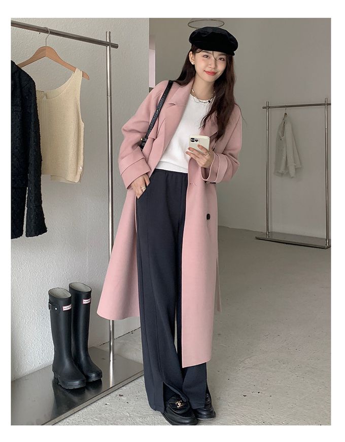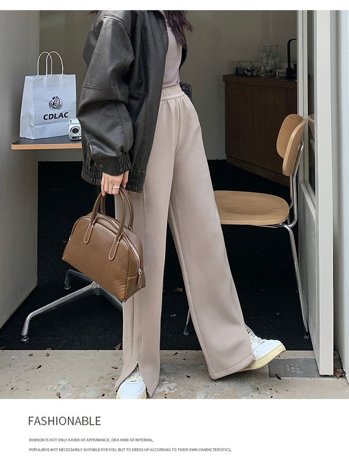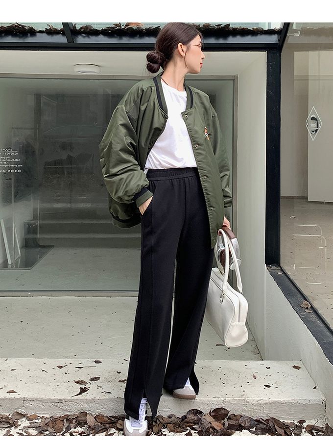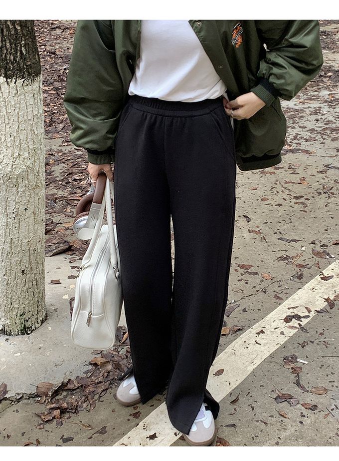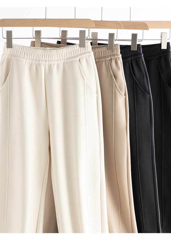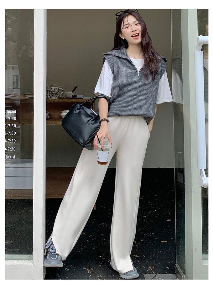 腰鬆緊顯瘦車線開衩長褲-雅白