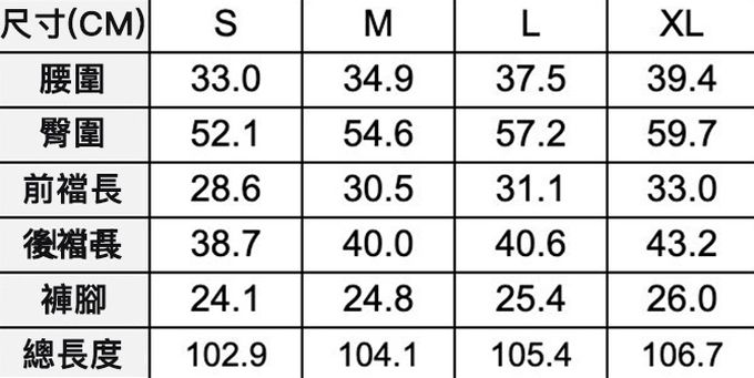 1. 尺寸表單位皆為公分(cm),實際尺寸會因布料彈性、水洗、測量起迄點等因素略有誤差。