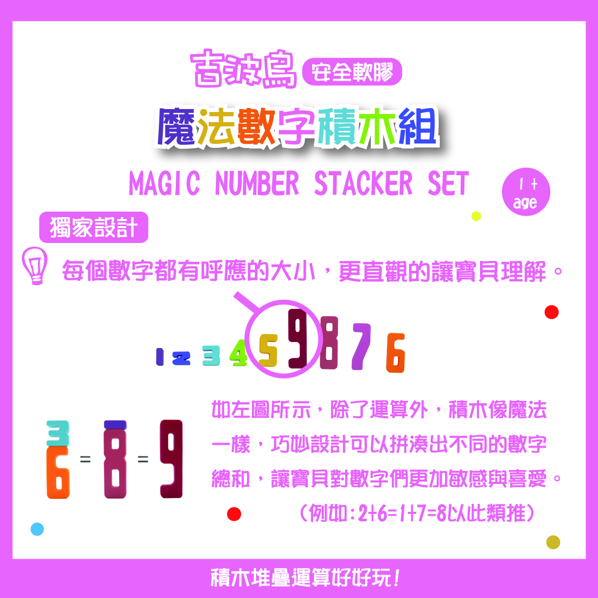 如左圖所示,除了運算外,積木像魔法一樣,巧妙設計可以拼湊出不同的數字總和,讓實貝對數字們更加敏感與喜愛。