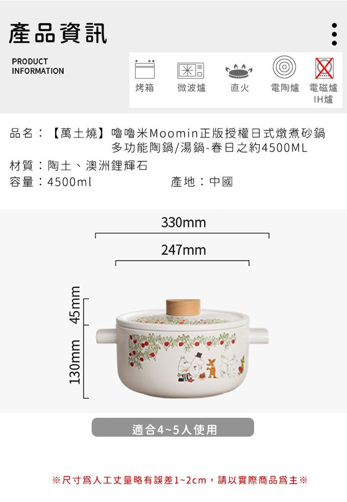 品名:嚕嚕米Moomin正版授權日式燉煮砂鍋/多功能陶鍋/湯鍋-春日之約4500ML