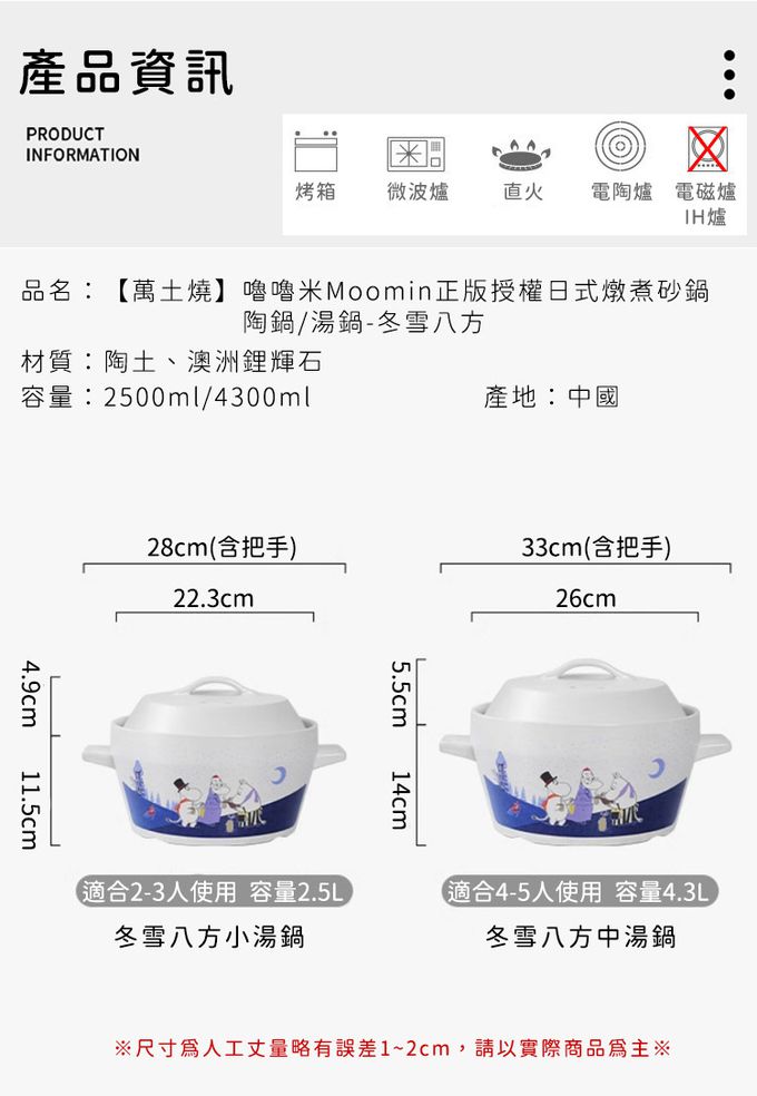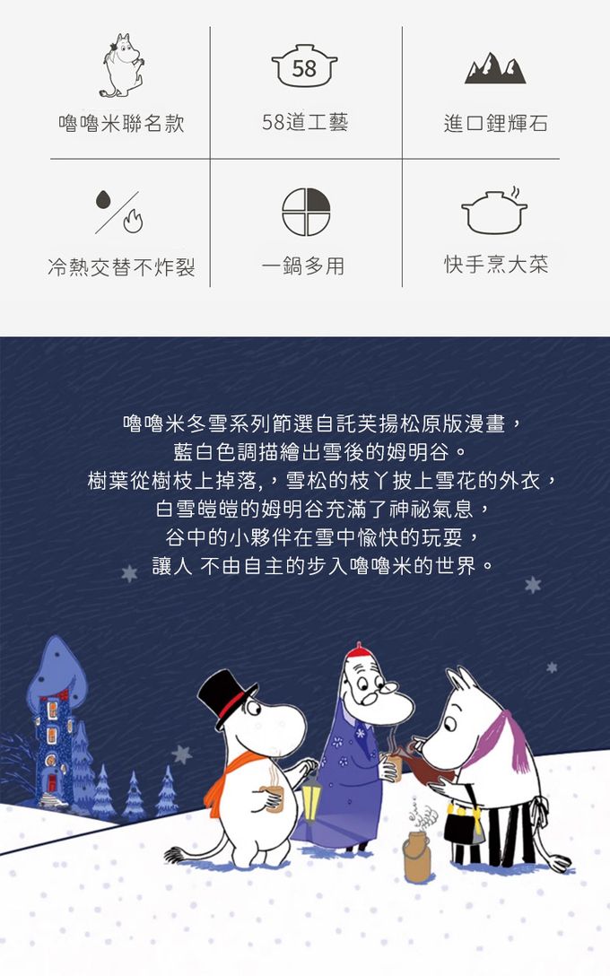 商品名稱:嚕嚕米Moomin正版授權日式燉煮砂鍋/陶鍋/湯鍋-冬雪八方小湯鍋