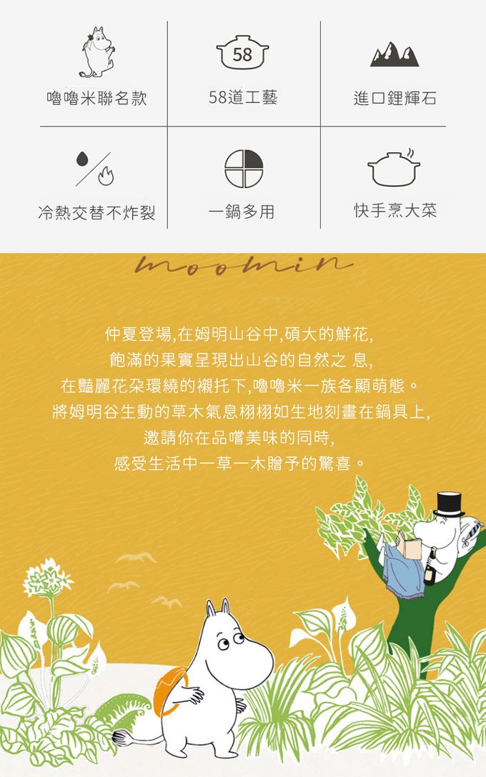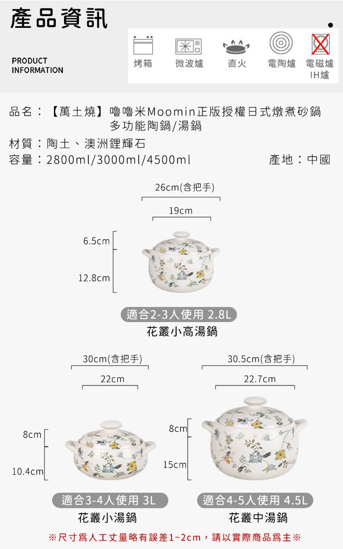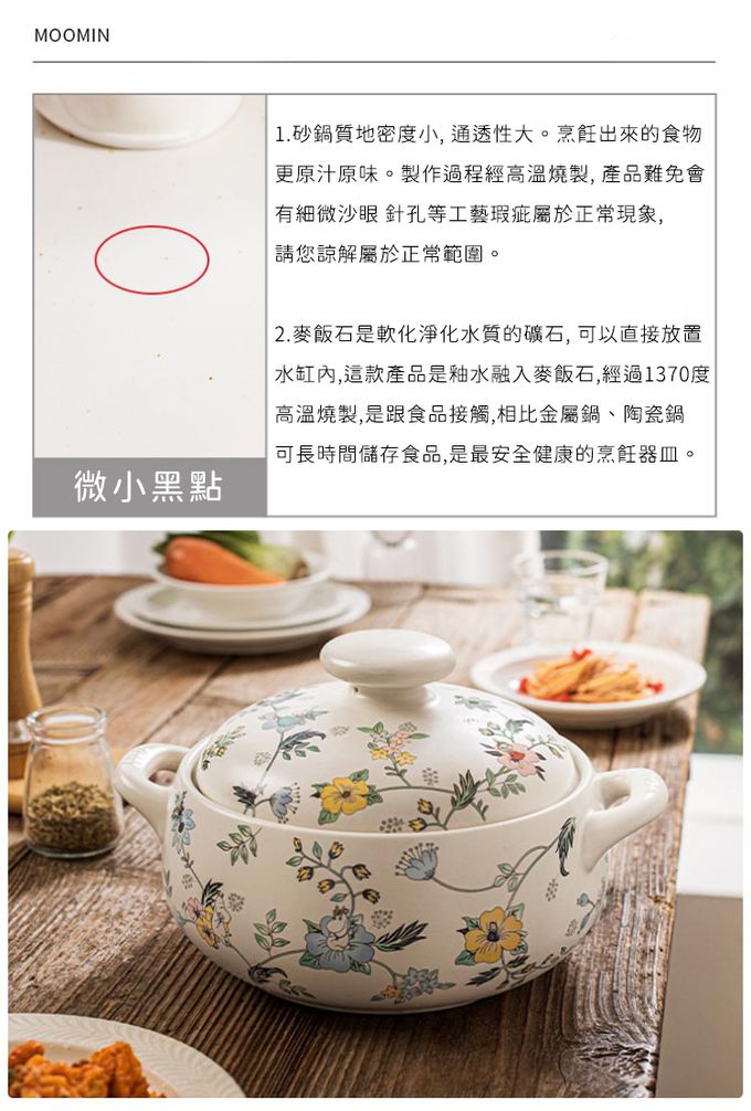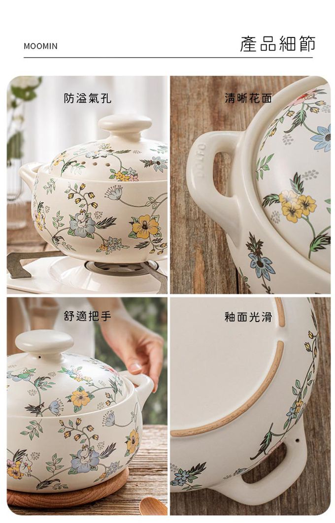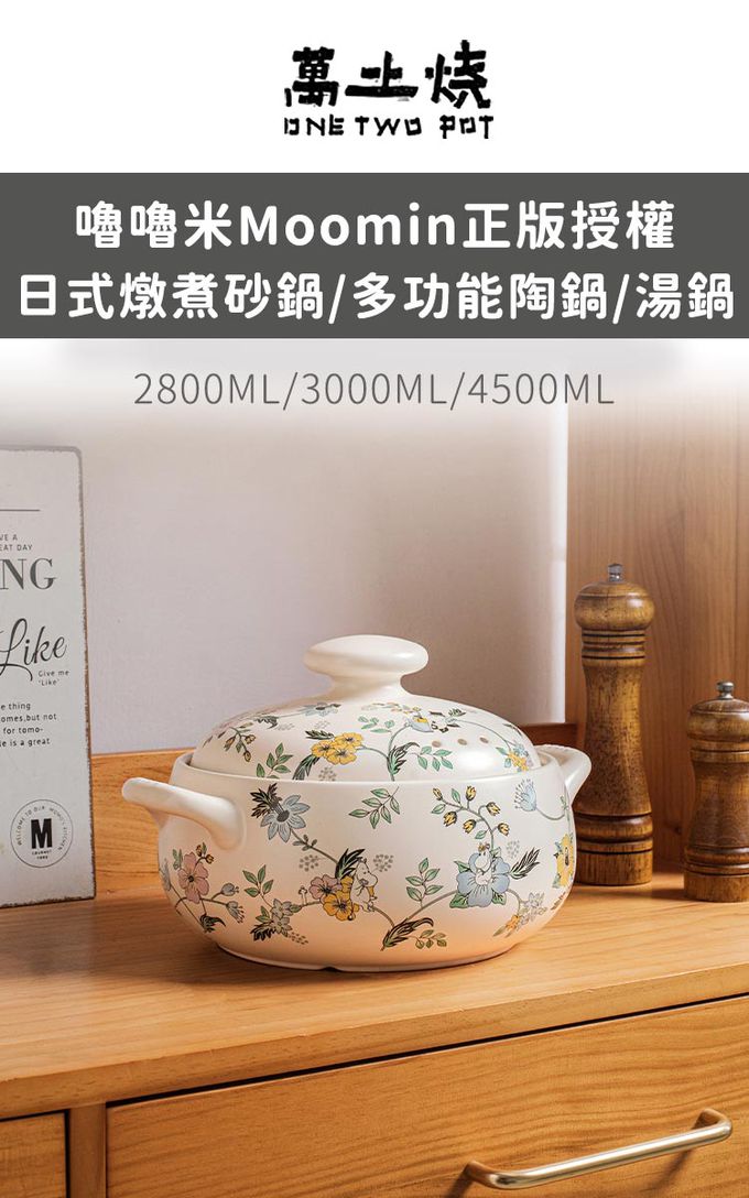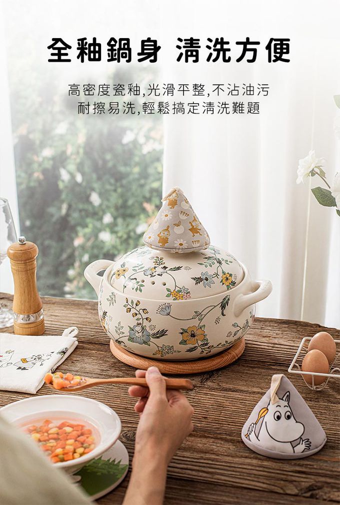 商品名稱:嚕嚕米Moomin正版授權日式燉煮砂鍋/多功能陶鍋/湯鍋-花叢中湯鍋