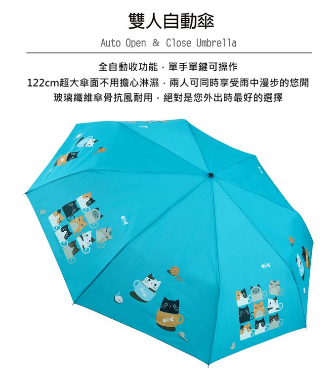 抗UV雙人自動傘-咖啡杯貓-480g