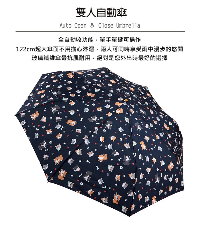 Rainstory - 抗UV雙人自動傘-貪吃臘腸狗