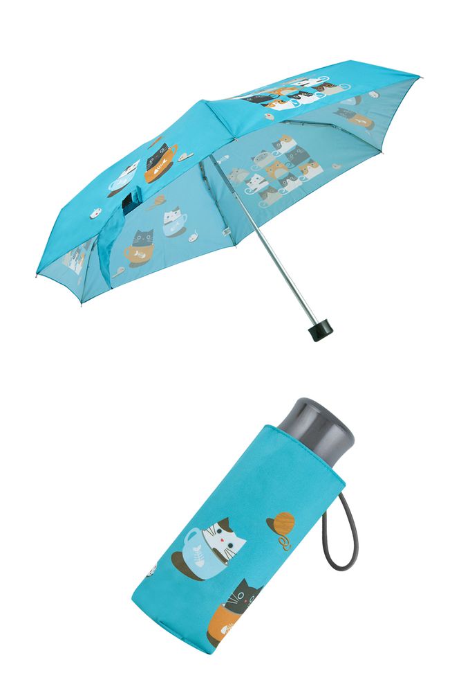 Rainstory - 抗UV手開迷你口袋傘-咖啡杯貓-230g