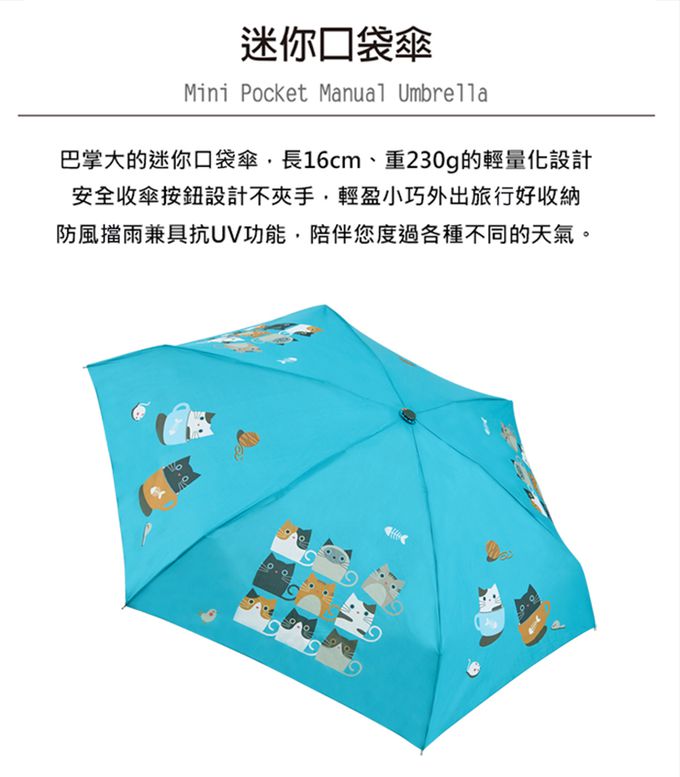 抗UV手開迷你口袋傘-咖啡杯貓-230g