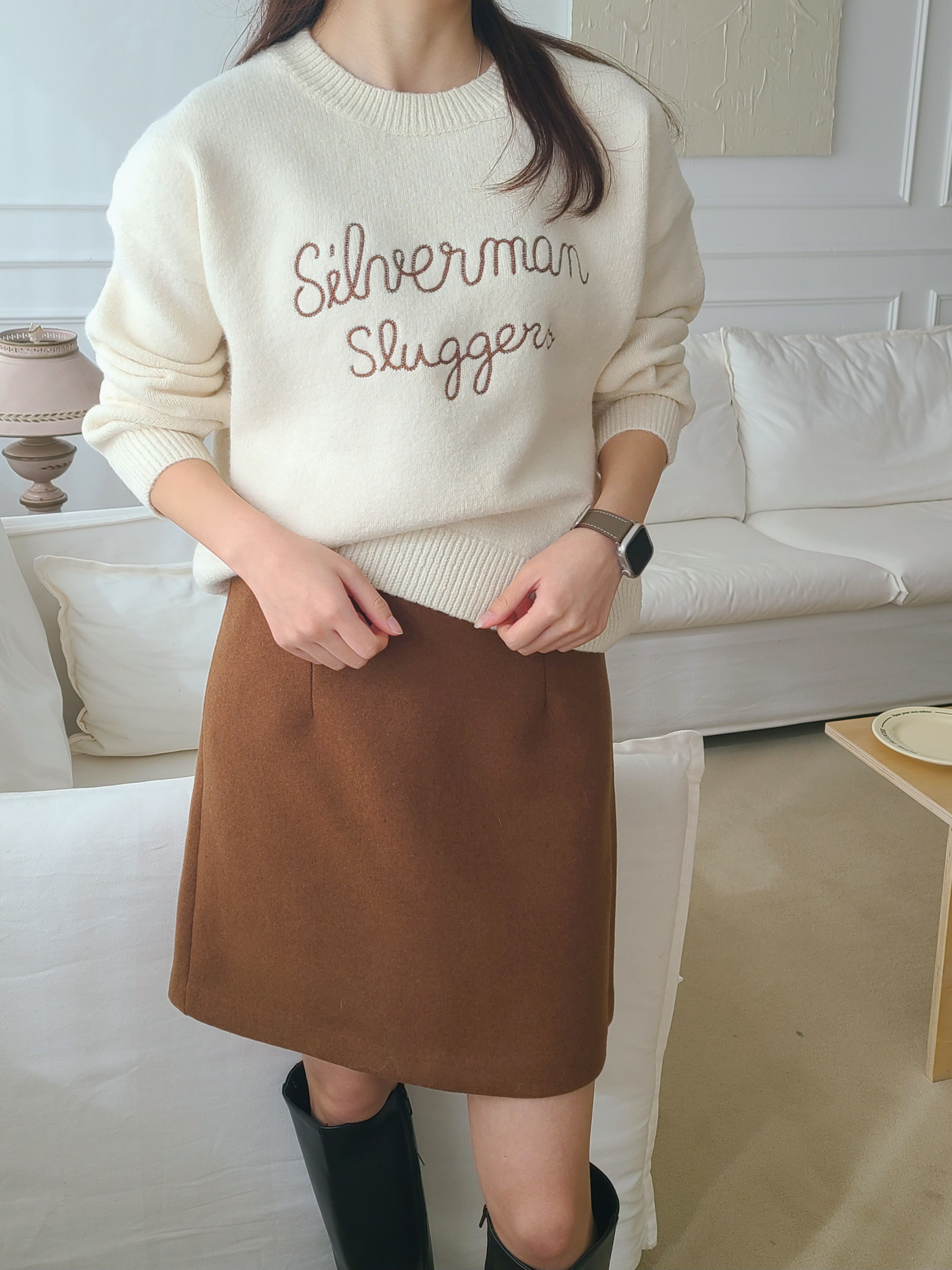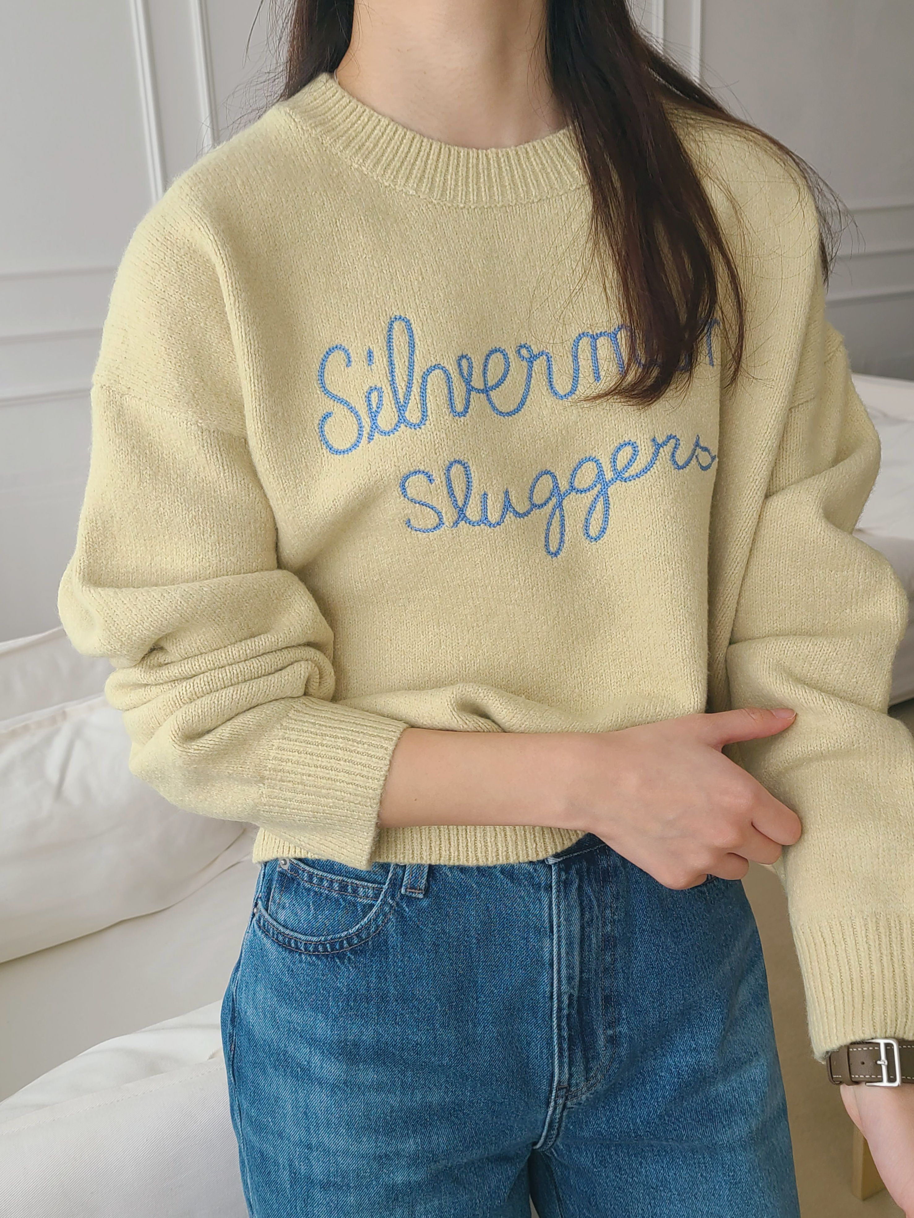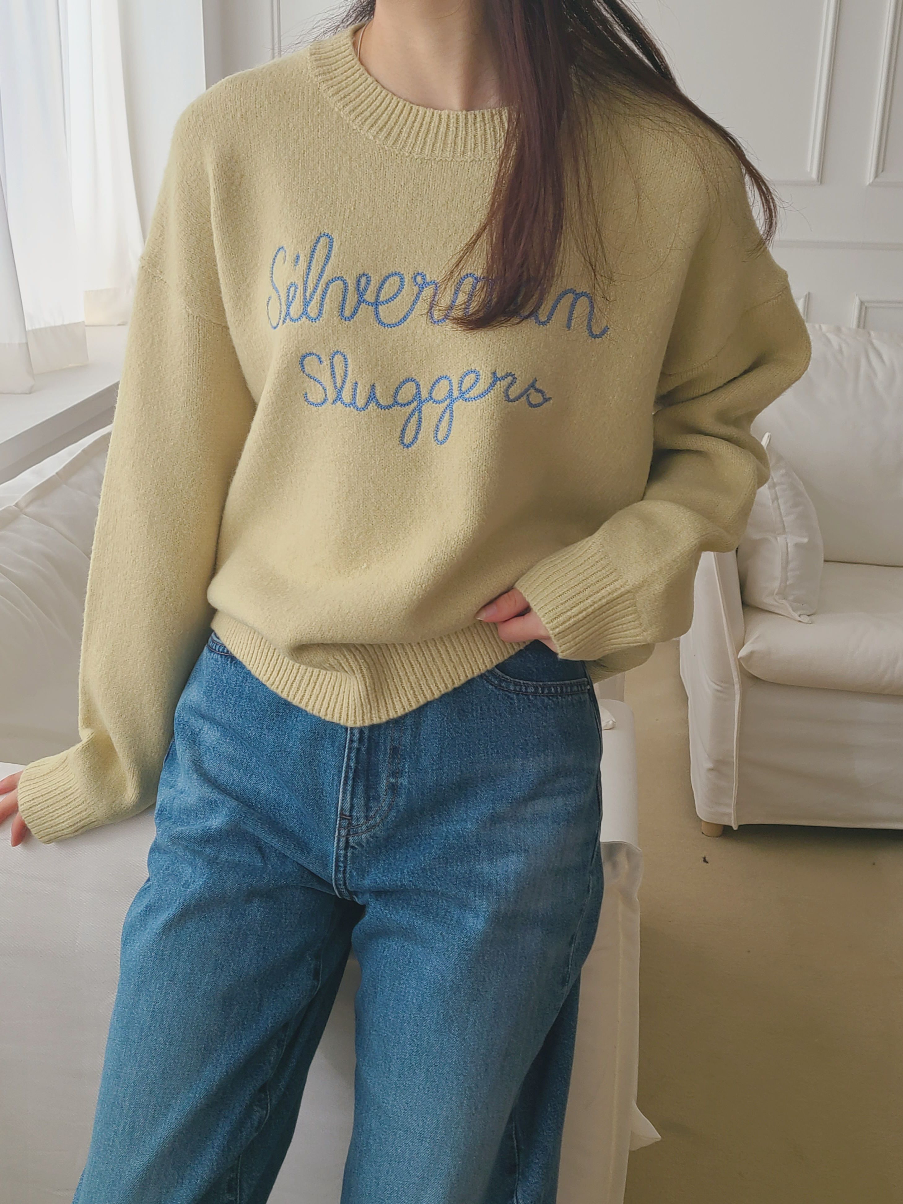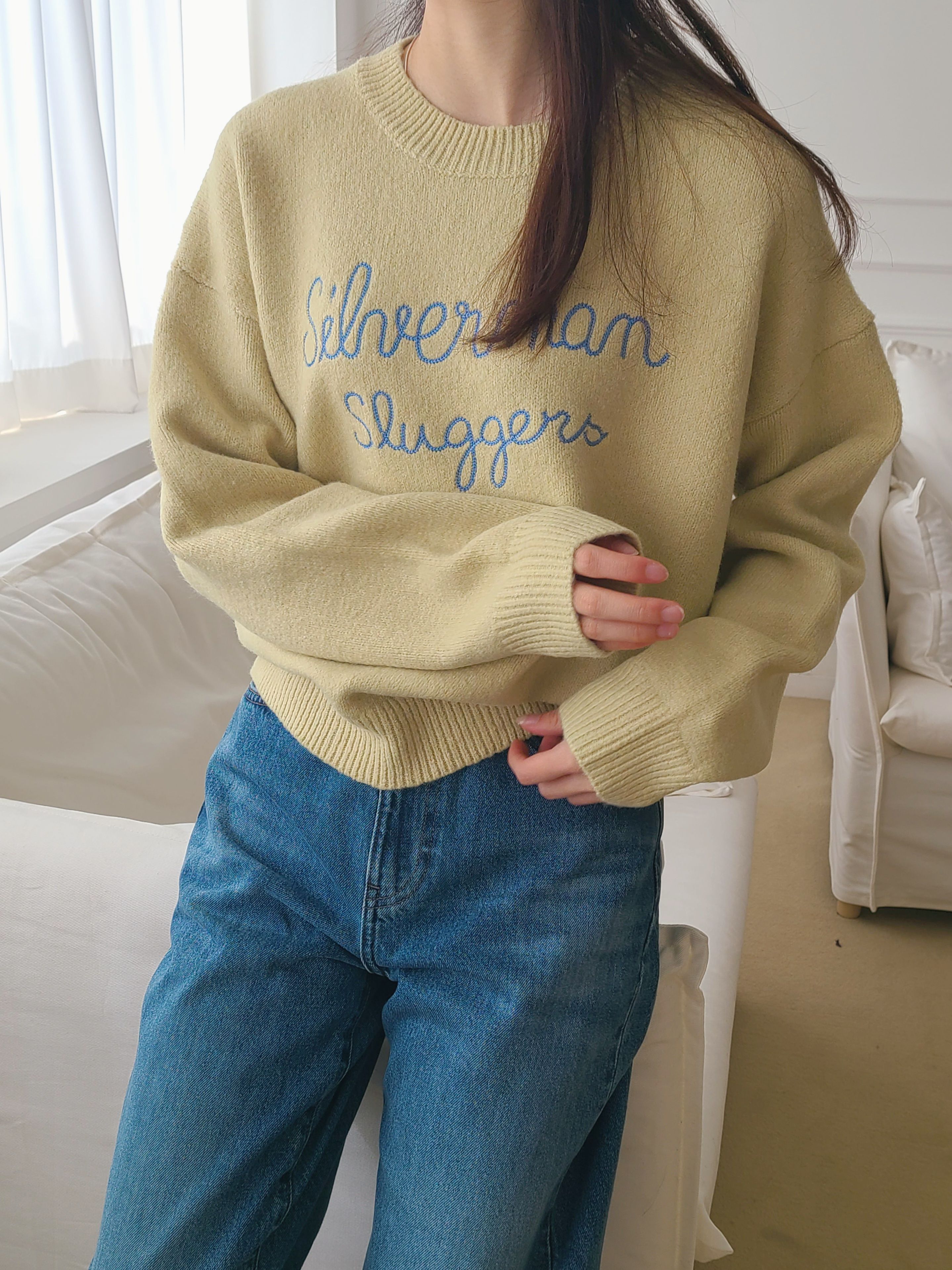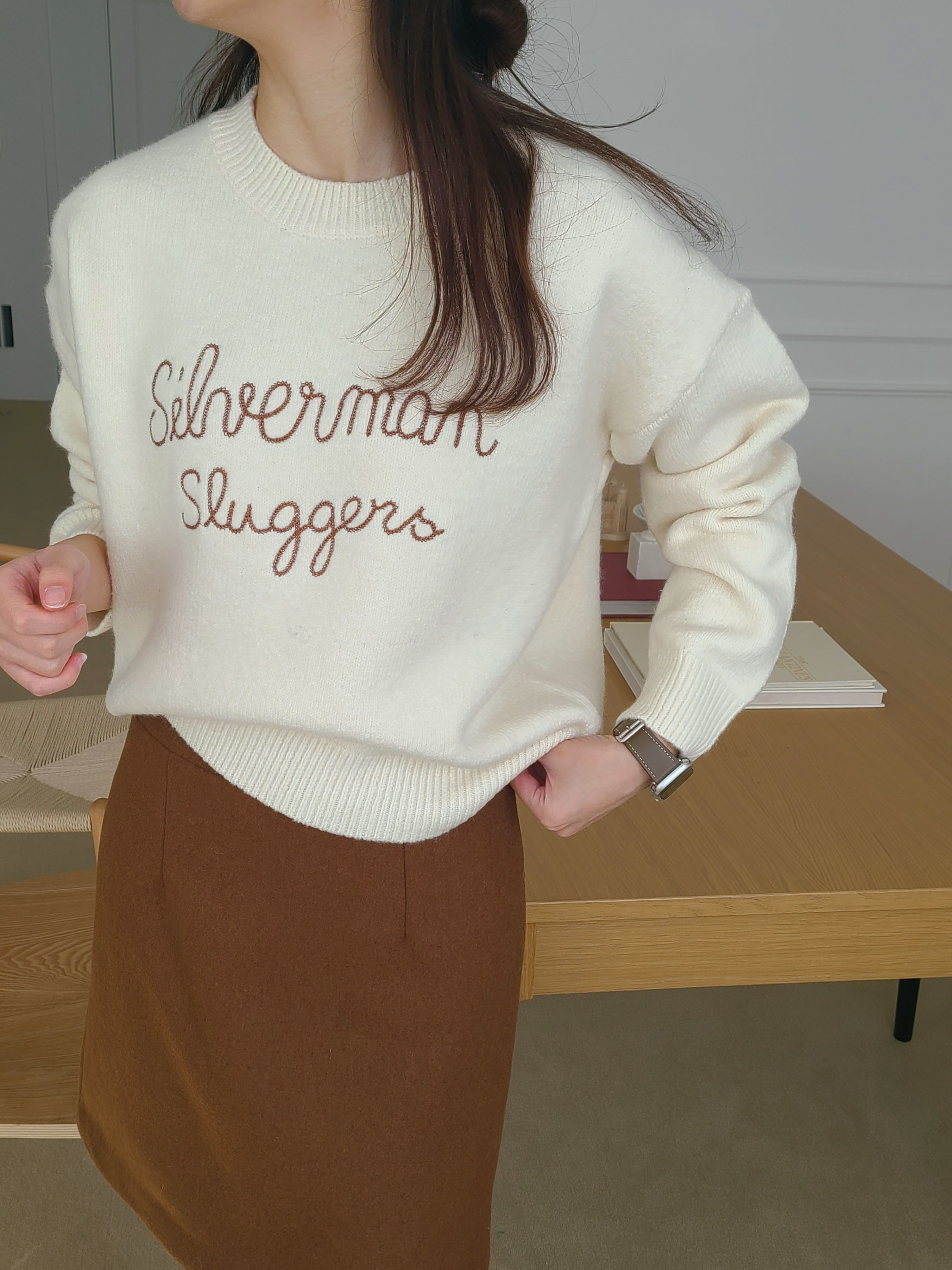 韓國女裝連線 - 刺繡文字點綴圓領針織上衣