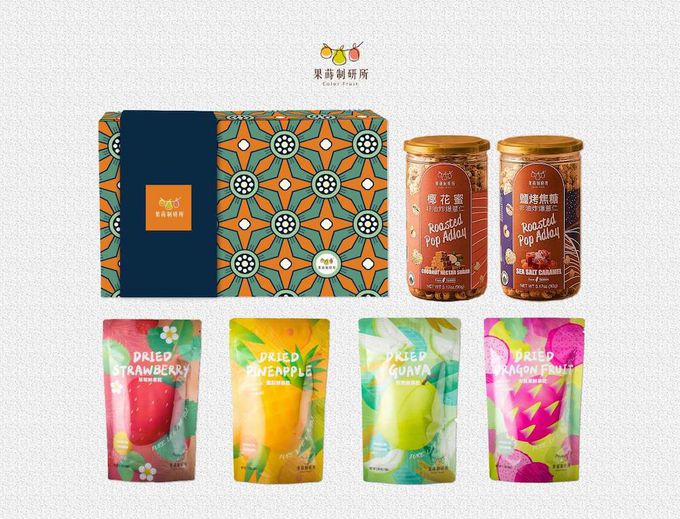 成分:椰花蜜爆薏仁:薏仁、砂糖、發酵無鹽奶油(殺菌鮮奶油、乳清、乳酸菌)、水、椰花蜜糖、鹽、維他命E(抗氧化劑) 鹽烤焦糖爆薏仁:砂糖、薏仁、水、發酵無鹽奶油(殺菌鮮奶油、乳清、乳酸菌)、鹽、維他命E(抗氧化劑) 火龍果鮮果乾:火龍果 鳳梨鮮果乾:鳳梨 草莓鮮果乾:草莓、糖、鹽 芭樂鮮果乾:芭樂、糖、鹽