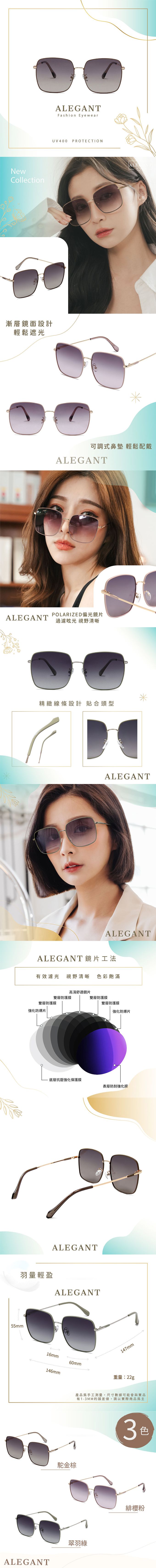 ALEGANT產品特色:韓版復古質感平面鏡框,霧面烤漆點綴整體框型。零失誤漸層穿搭,簡約設計輕鬆演繹法式優雅的精髓。可調式立體舒適鼻墊,低鼻樑也適合配戴,適合各種臉型。漸層時尚鏡面與天空相互映襯,各種臉型皆可完美搭配與駕馭。抗UV400有效阻隔紫外線傷害,炎炎夏日不僅防曬、時尚又吸睛。輕量材質鏡腳,使復古與現代美感平衡調配,增加配戴的舒適度。採用POLARIZED寶麗來偏光鏡片,讓強烈眩光變得柔和、視線更清晰。