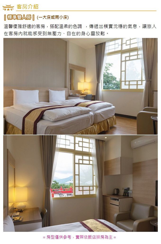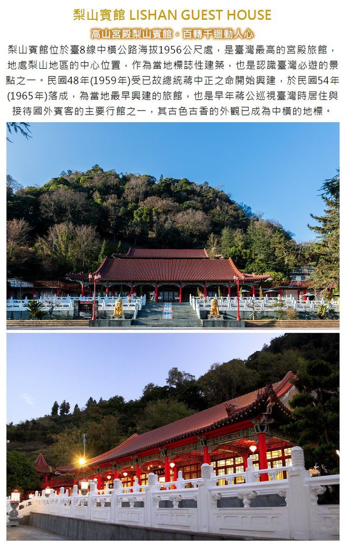 1.本券可雙人入住梨山賓館標準雙人房乙晚,含2客早餐。