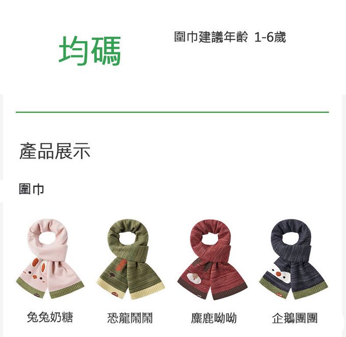適用年齡:圍巾均碼(建議年齡1~6歲)