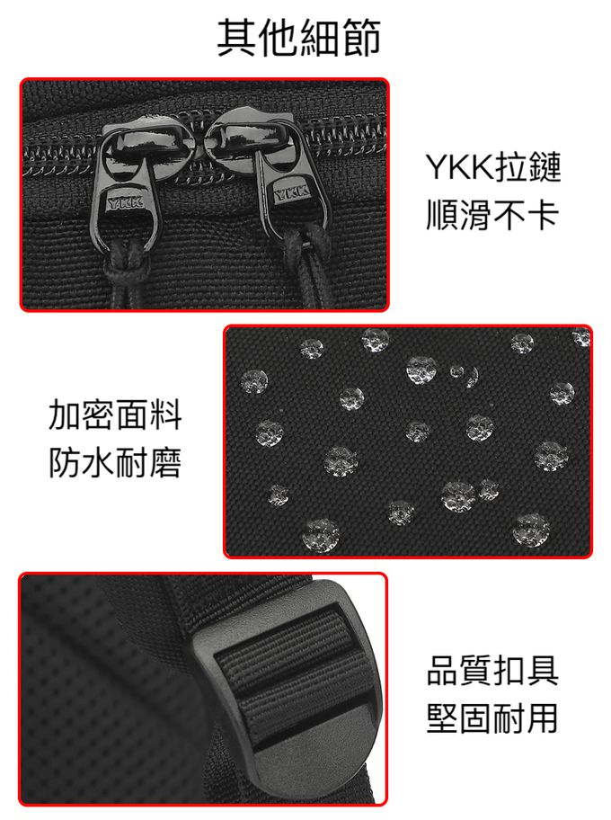 材質: 防潑水加密聚酯纖維面料, 耐磨耐刮