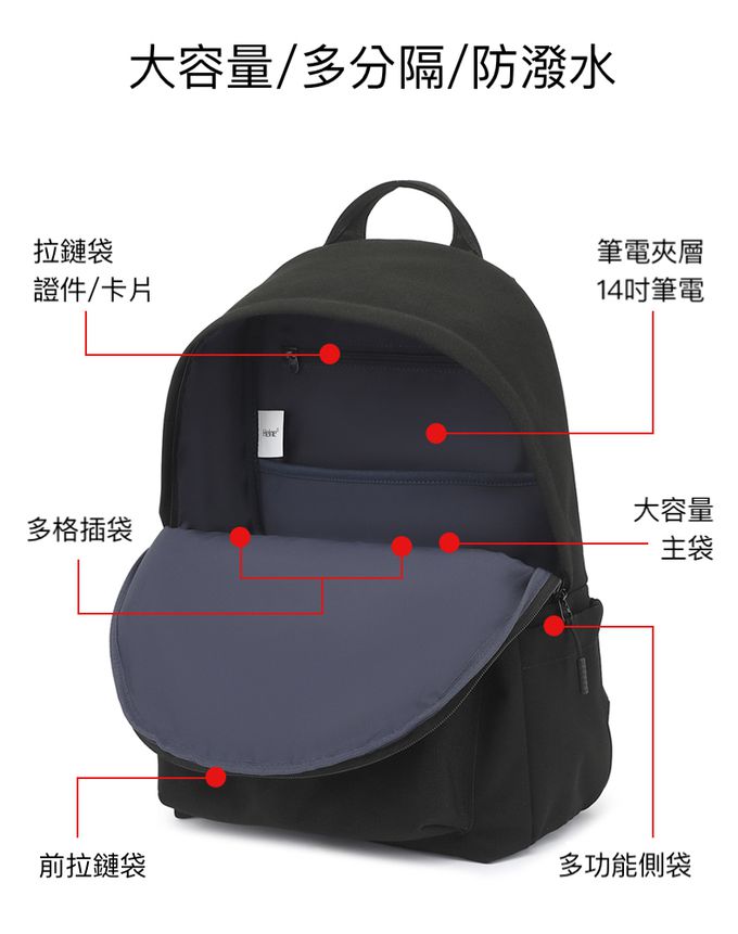 背包內部多分隔,空間大,容量大,14吋筆電夾層, 可放A4資料夾