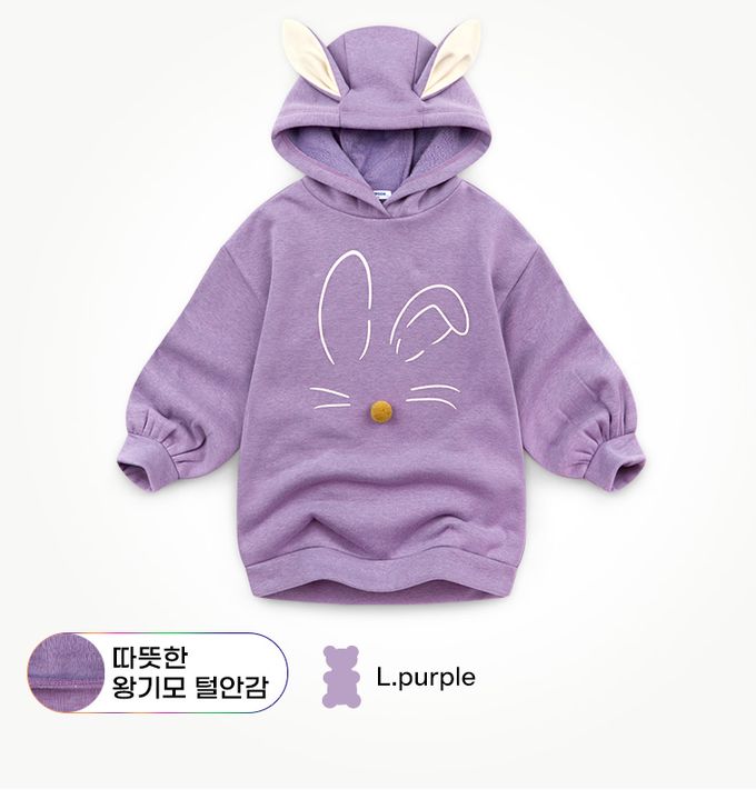 韓國 Jelispoon - 小兔子內刷毛長版上衣X內搭褲套裝-紫X灰