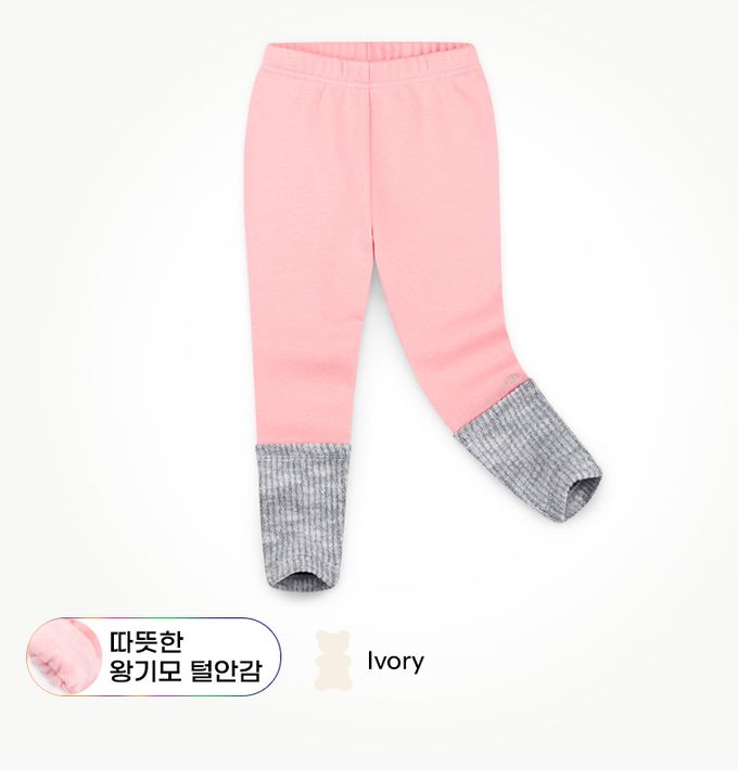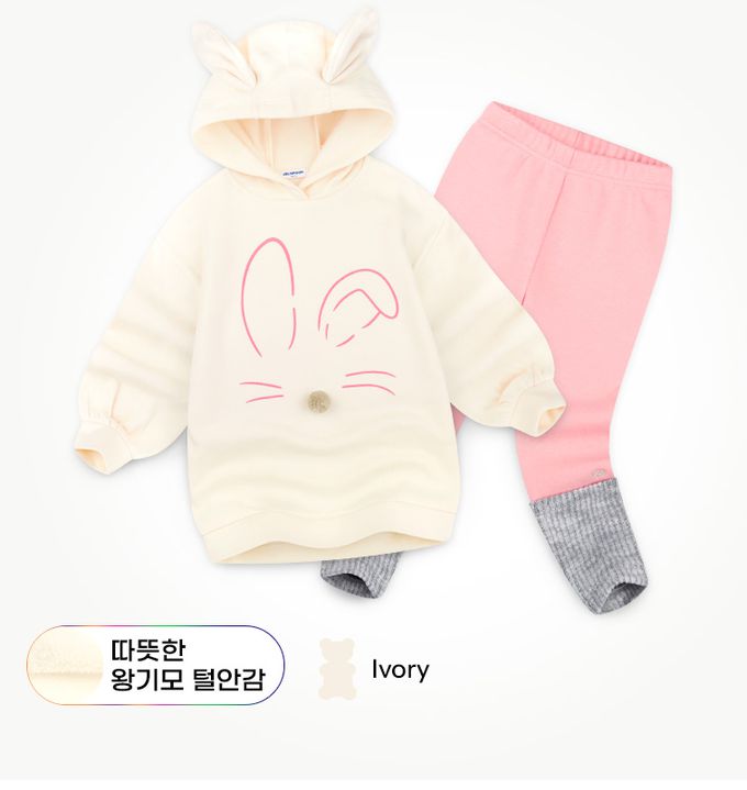 韓國 Jelispoon - 小兔子內刷毛長版上衣X內搭褲套裝-象牙白X粉X灰