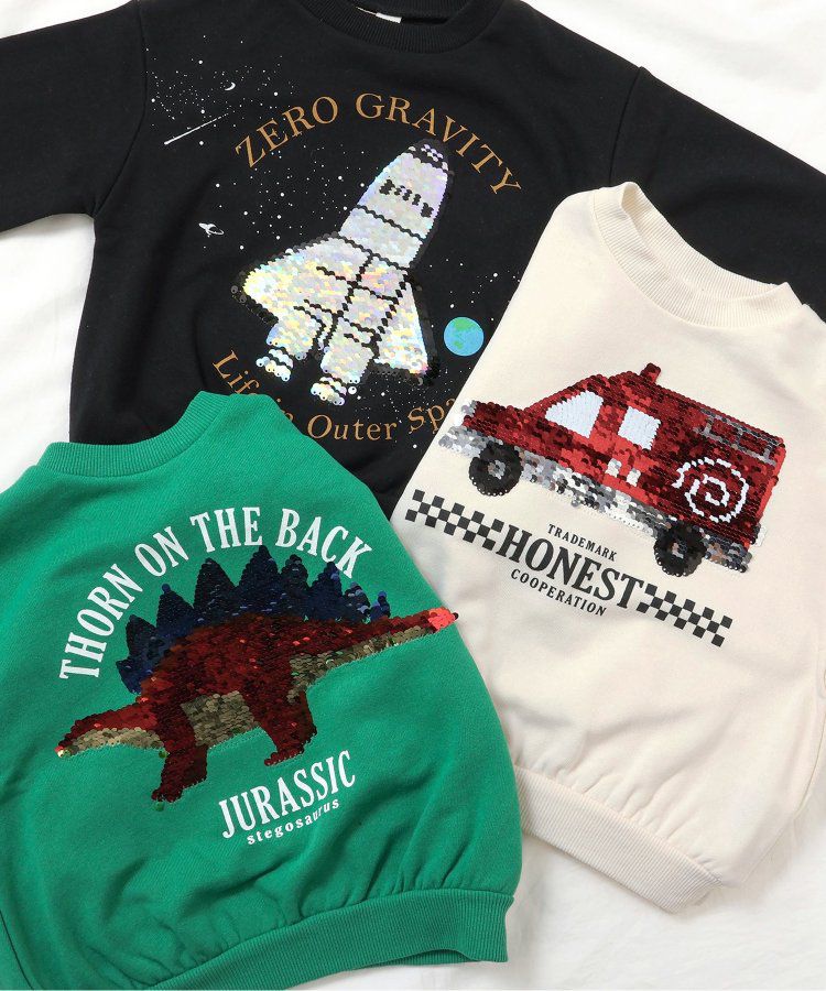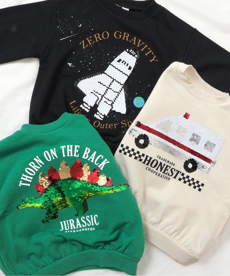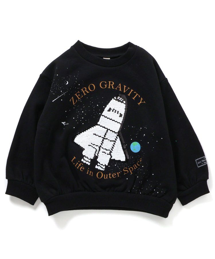 日本 apres les cours - 酷炫亮片裝飾裏毛上衣-火箭-黑