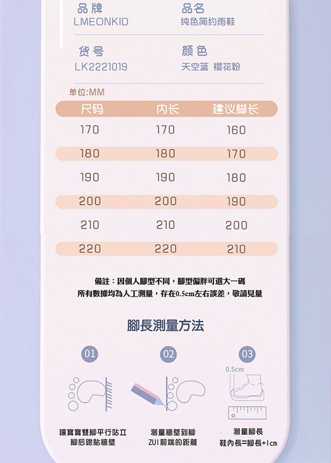 韓國lemonkid - 純色簡約雨鞋-天空藍