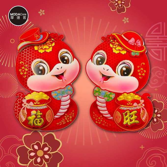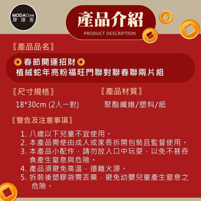 品名:◉春節開運招財◉植絨蛇年亮粉福旺門聯對聯春聯兩片組