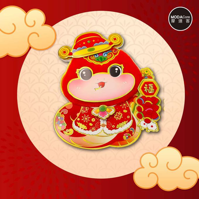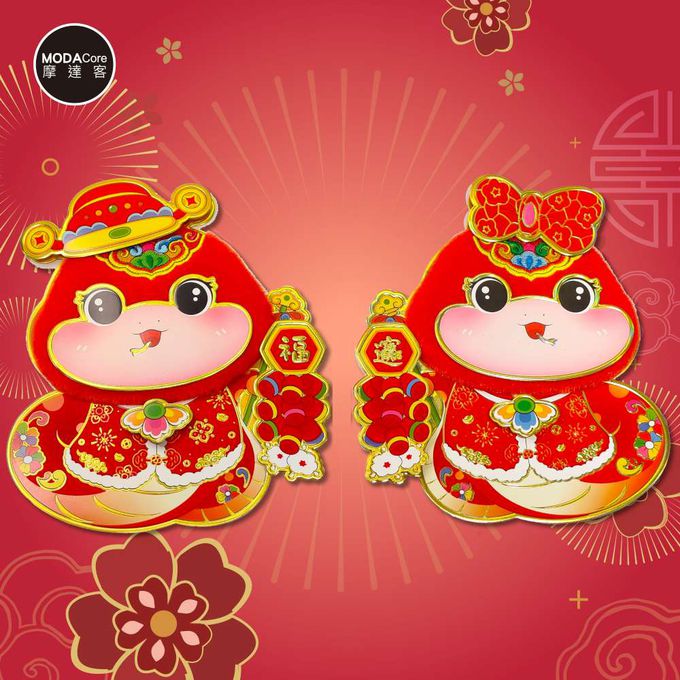 ◉春節開運招財◉刺繡毛絨Q蛇福寶鞭炮門聯對聯(大)春聯兩片組