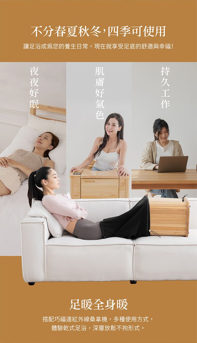 • 搭配遠紅外線桑拿機,體驗乾式足浴,深層放鬆不拘形式。