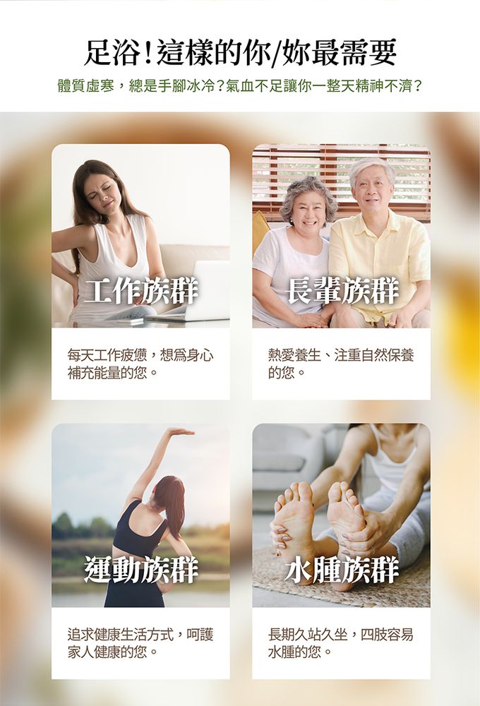 • 直接放入40℃以上熱水浸泡,立即享受溫熱足浴