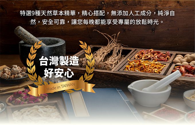 • 特選香茅、蒲公英、迷迭香、艾草、荷葉、伸筋草、北茵陳、川芎與乾薑。