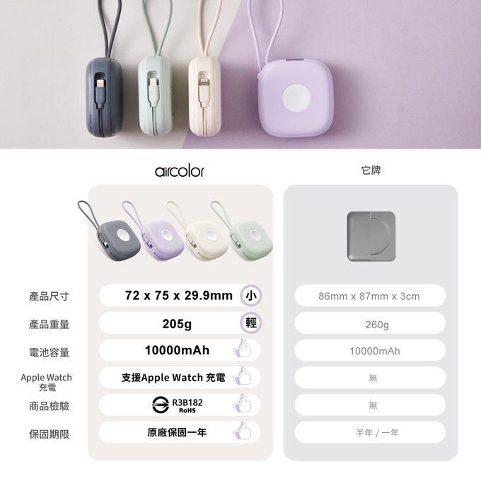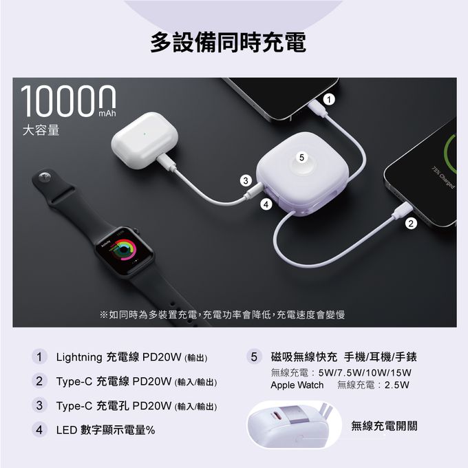 Lightning cable output:支持PD2.0/PD3.0,實現iPhone9V快充輸出