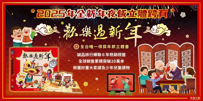 2025年《歡樂過新年》添加了全新立體設計,讓年夜飯的圍爐場景生動呈現,像是親臨熱鬧的團圓飯桌!翻開書頁,蒸騰的熱氣、滿滿的佳餚與家人歡笑彷彿就在眼前。不只是故事,更是一場充滿年味的互動體驗,讓孩子感受傳統節慶的濃濃溫情吧!