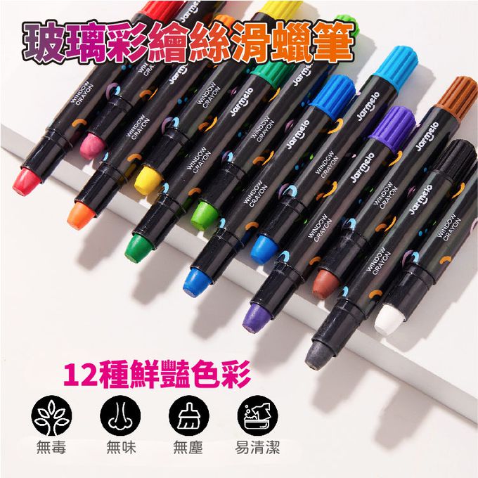 品名:玻璃彩繪絲滑蠟筆(12色) JA96710