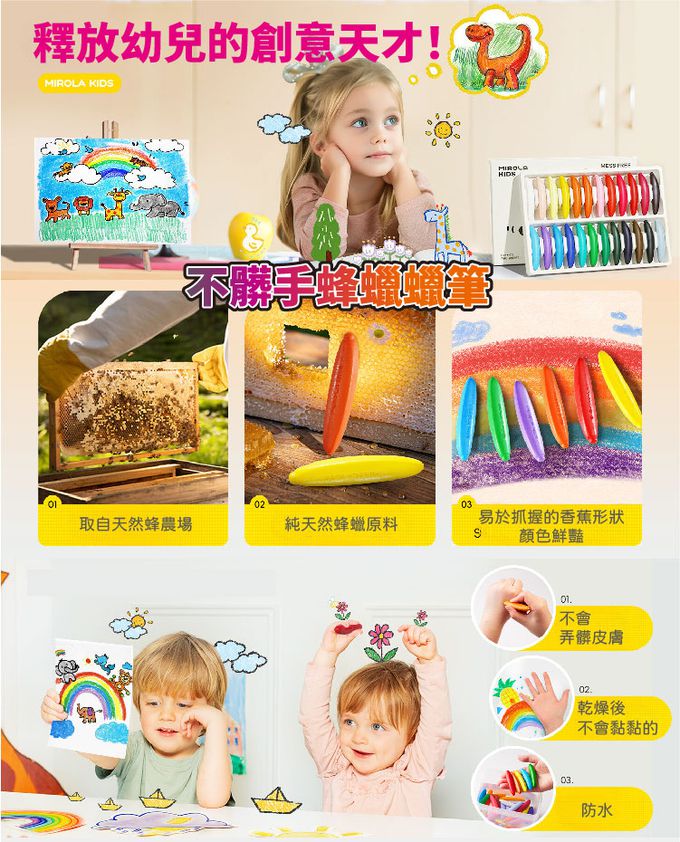 • 品名:不髒手蜂蠟蠟筆(24色) JA96222