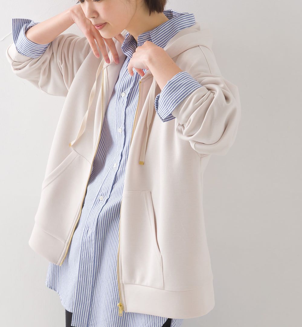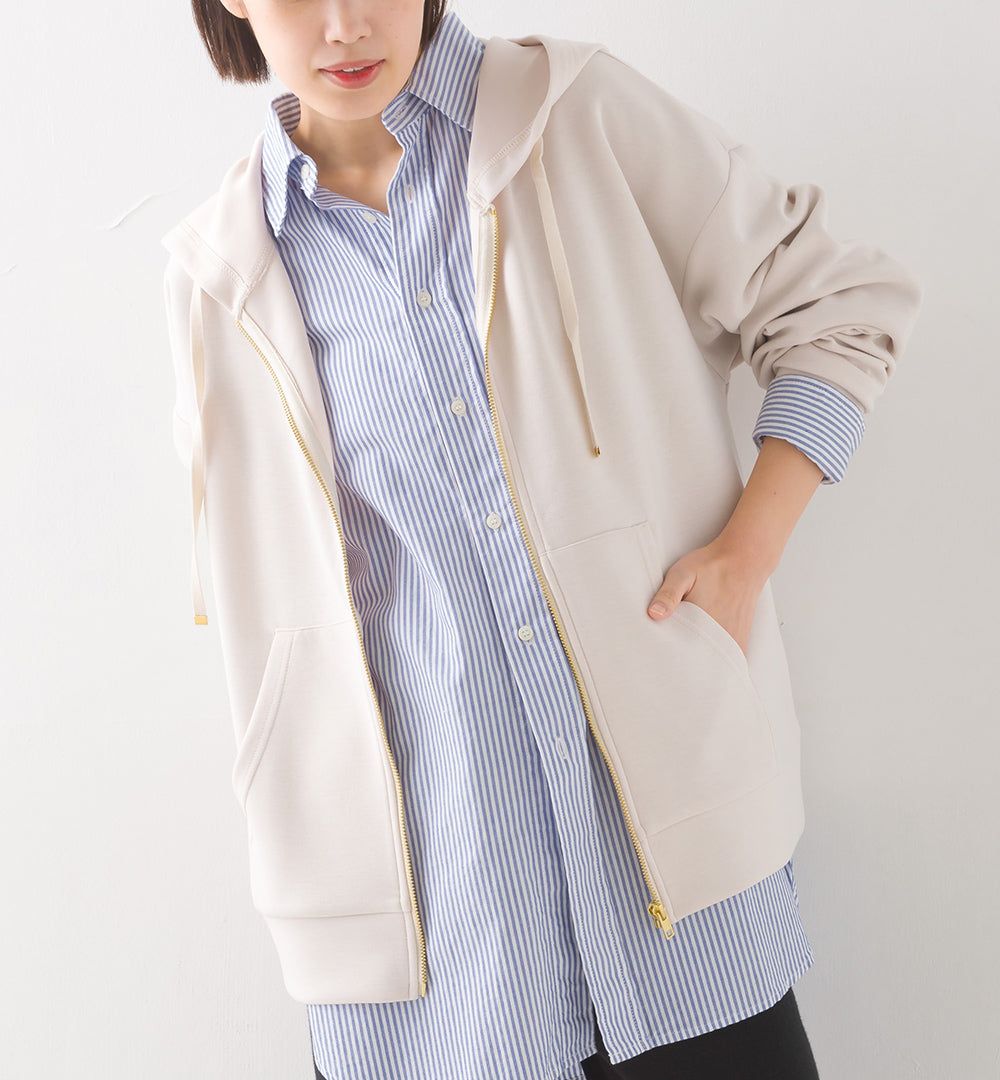 日本 OMNES - 柔軟輕盈連帽休閒外套-象牙白