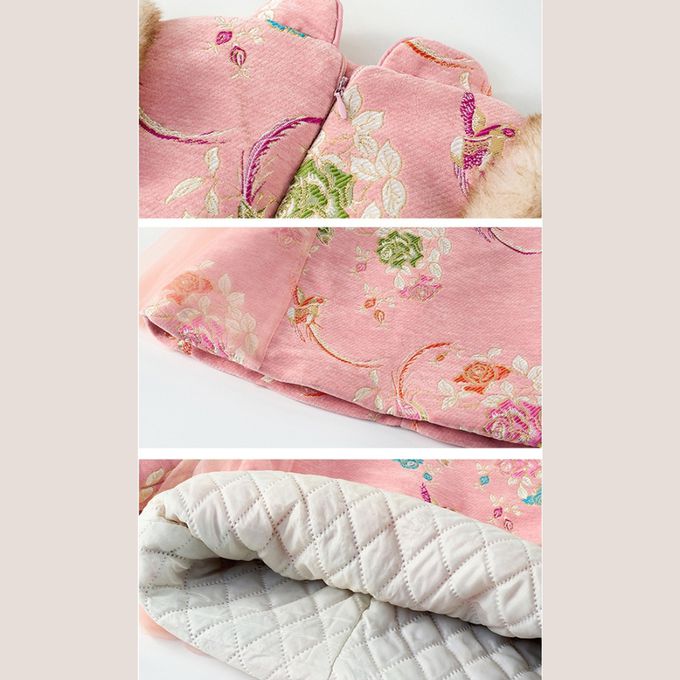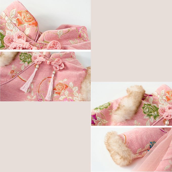 新年拜年甜美古風旗袍領鋪棉網紗點綴洋裝 新年拜年女童洋裝-粉紅色