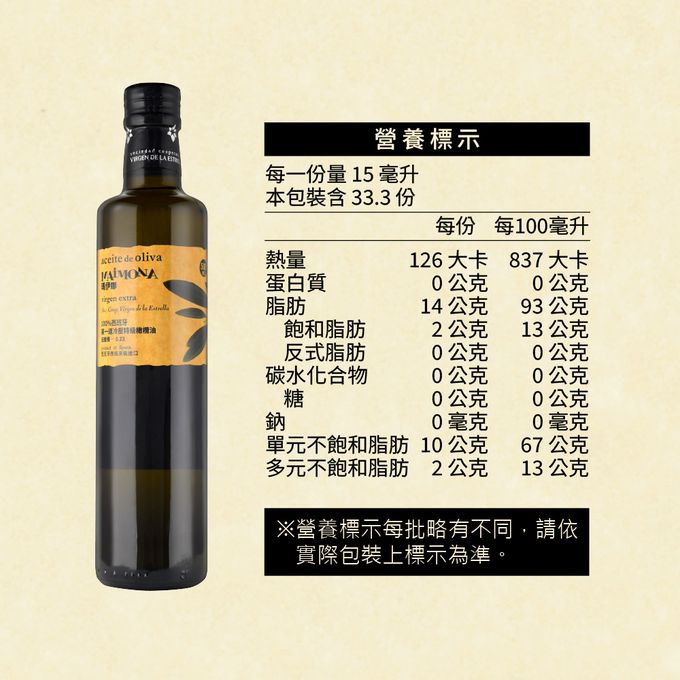 品名:瑪伊娜特級初榨冷壓橄欖油(500ml)