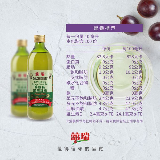 品名:特級100%純葡萄籽油