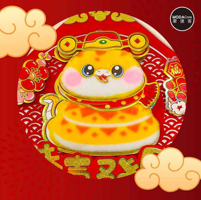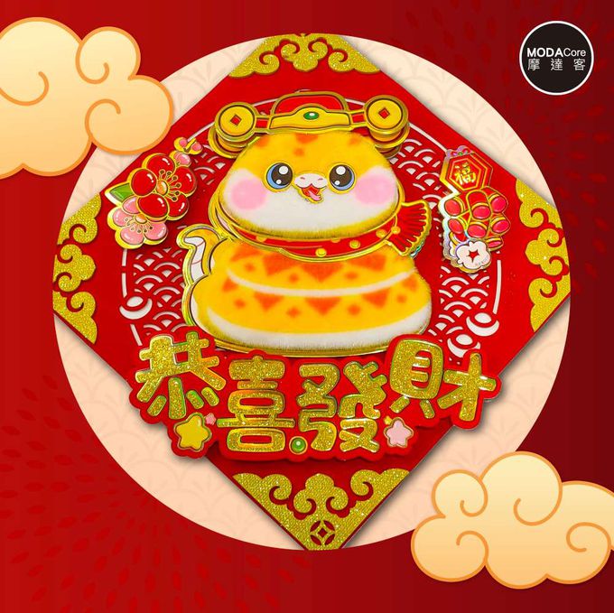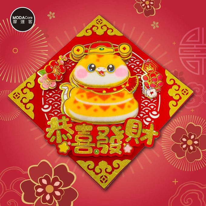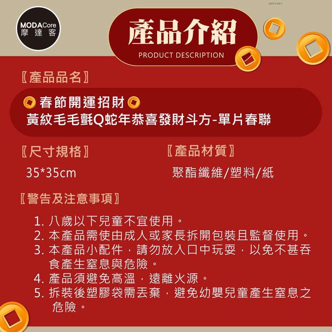 品名:◉春節開運招財◉黃紋毛毛氈Q蛇年恭喜發財斗方-單片春聯