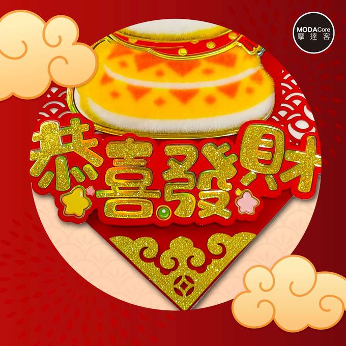 ◉春節開運招財◉黃紋毛毛氈Q蛇年恭喜發財斗方-單片春聯