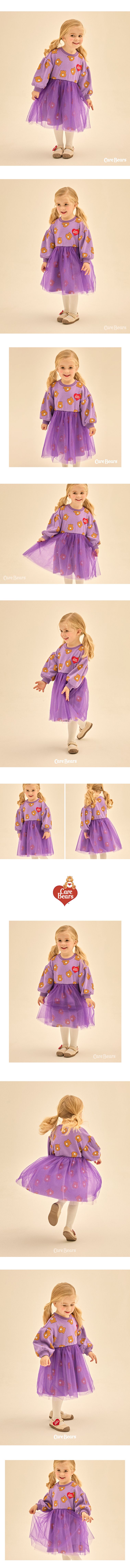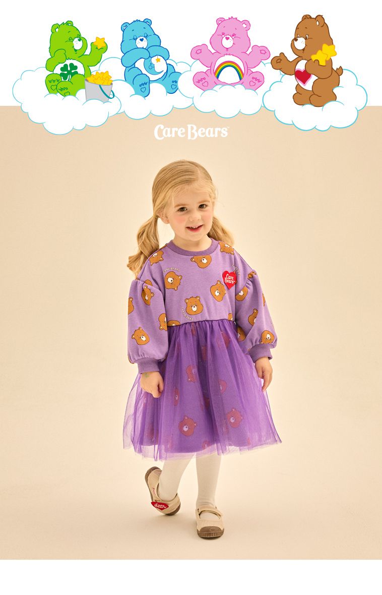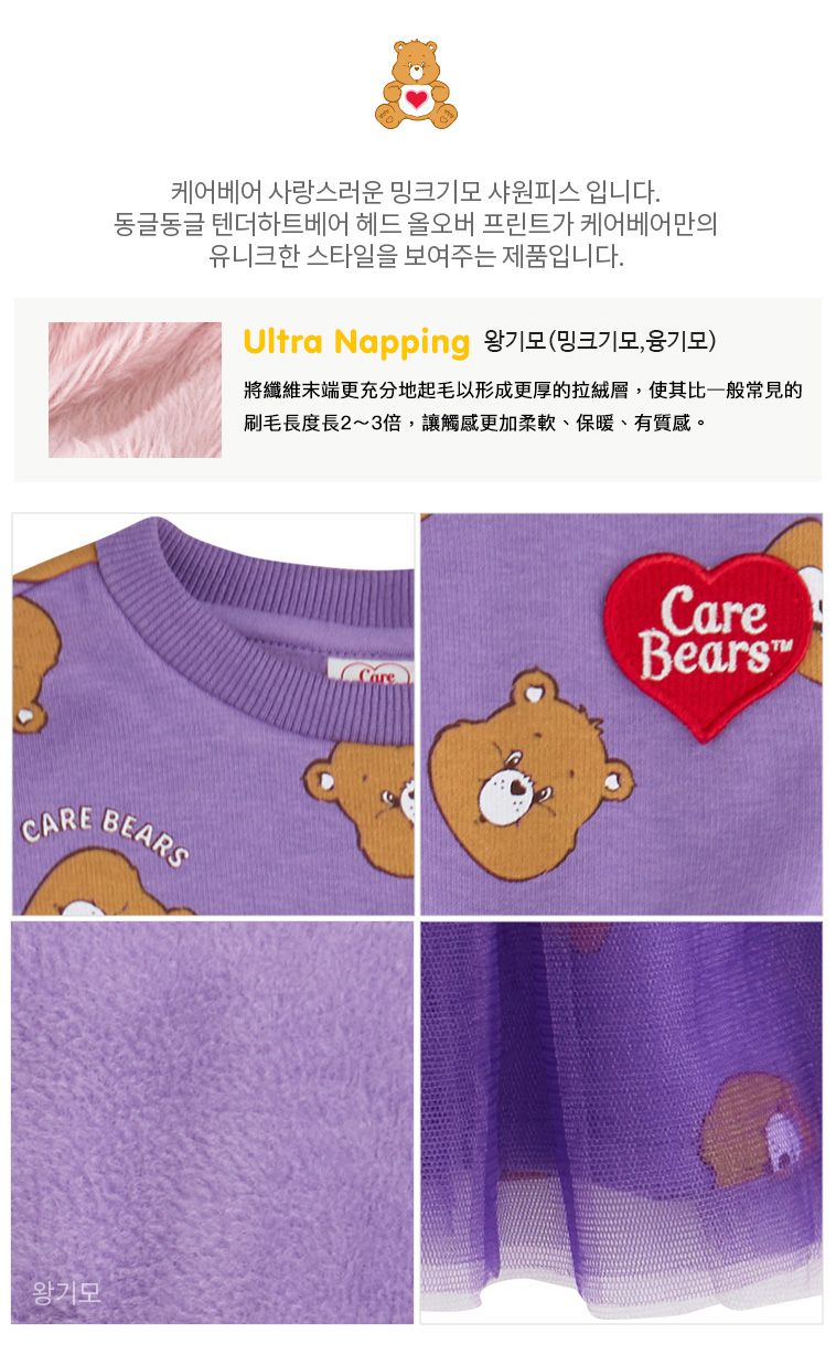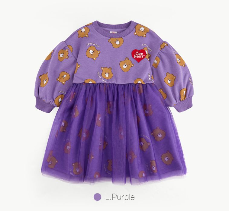 韓國 Care Bears - 聯名款熊熊內刷毛網紗點綴洋裝-紫