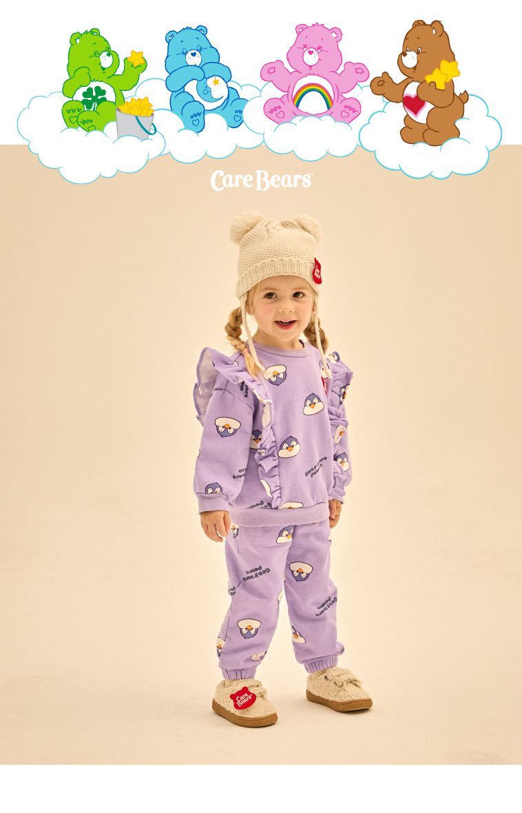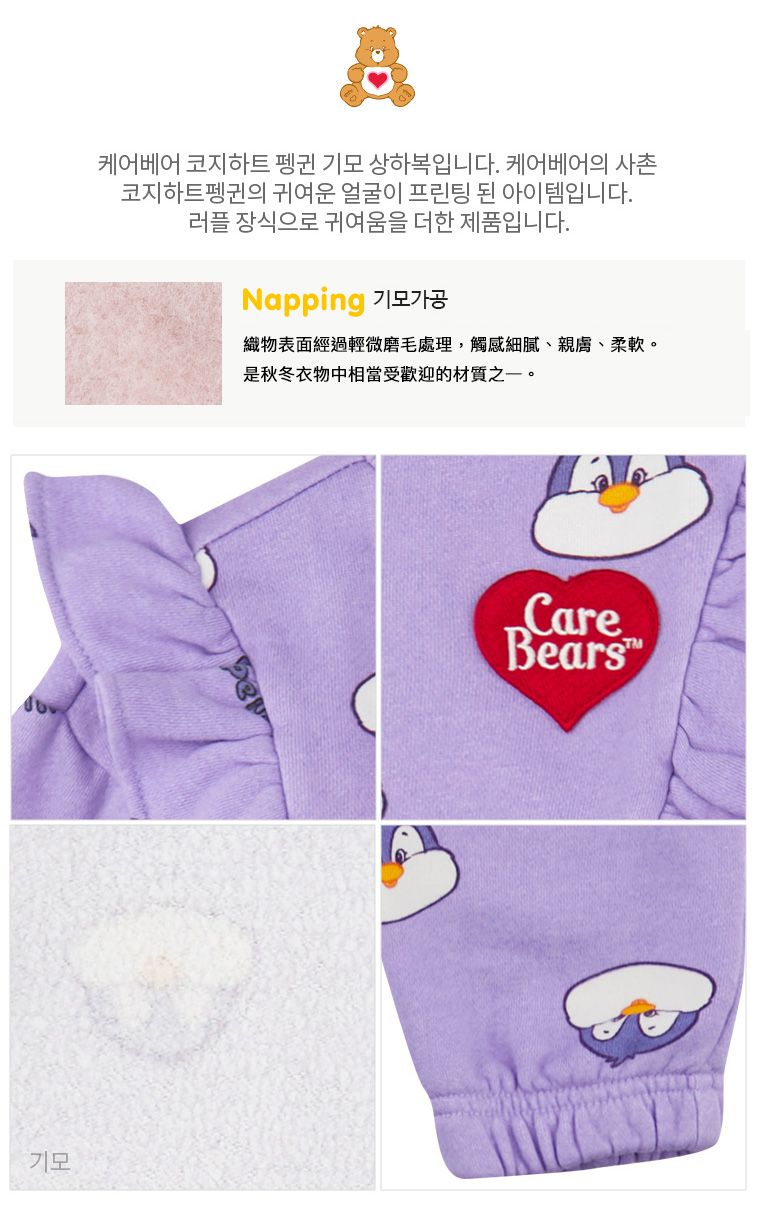 韓國 Care Bears - 聯名款可愛企鵝內磨毛長袖套裝-紫
