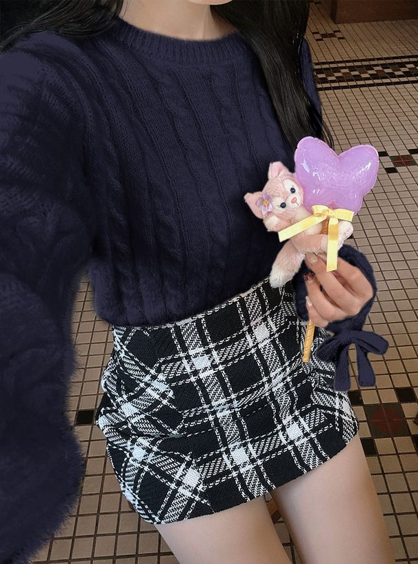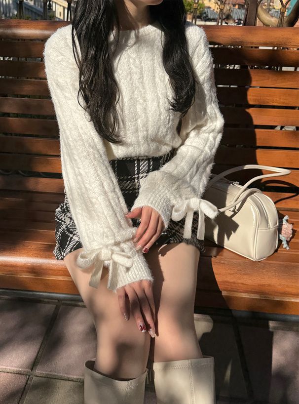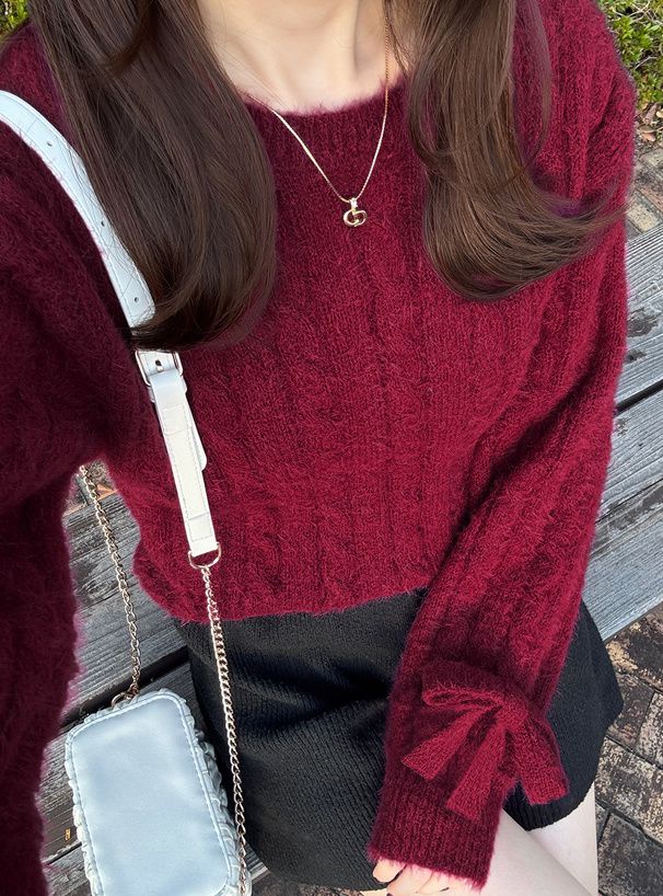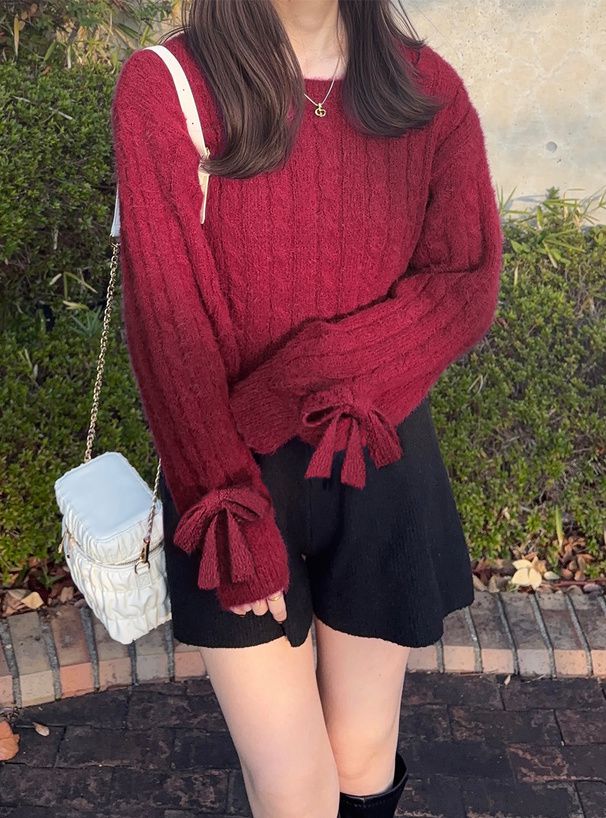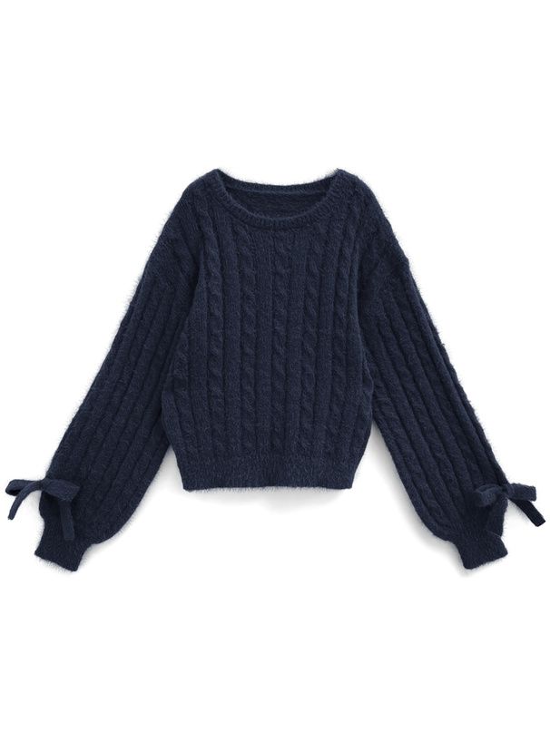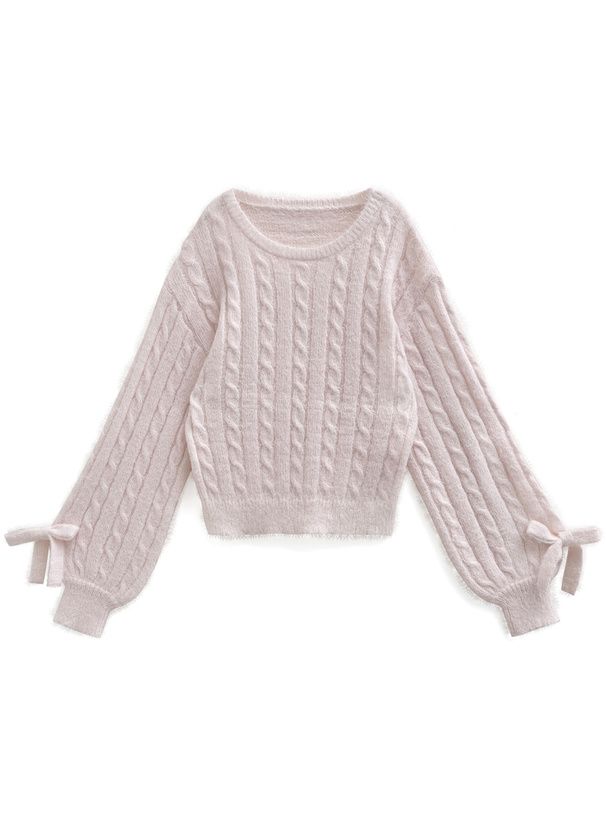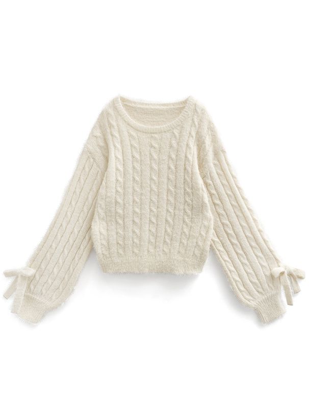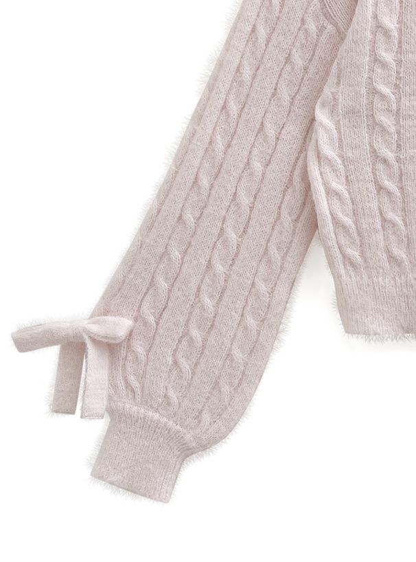 • 品名:袖口立體蝴蝶結麻花針織上衣
