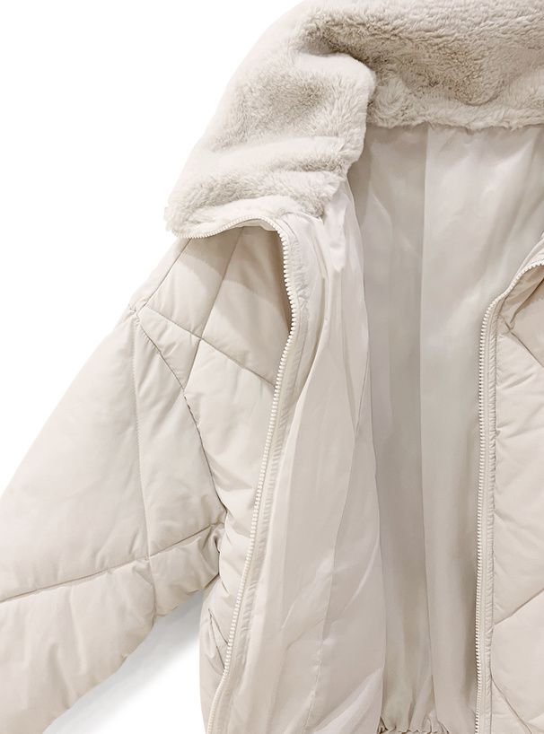 日本 GRL - 2WAY毛絨立領科技羽絨保暖外套-象牙白 (F)