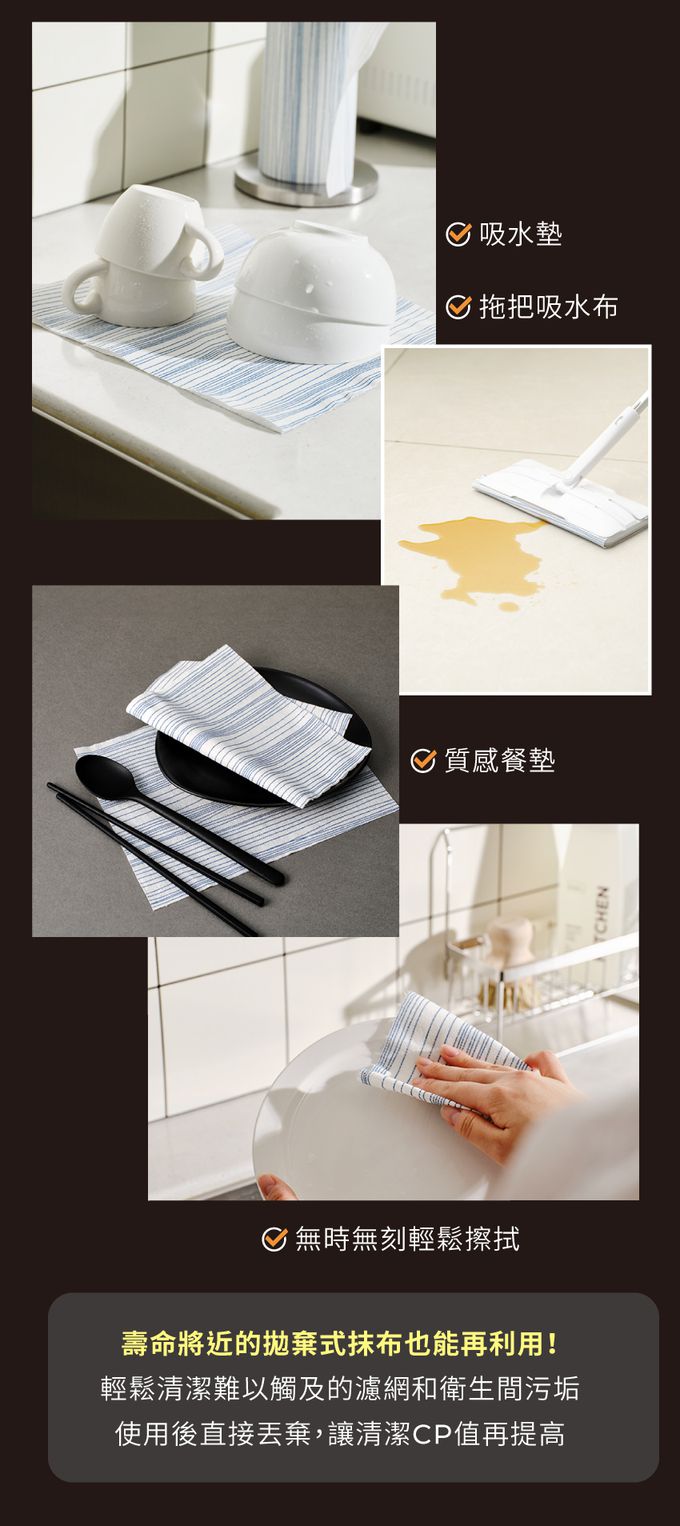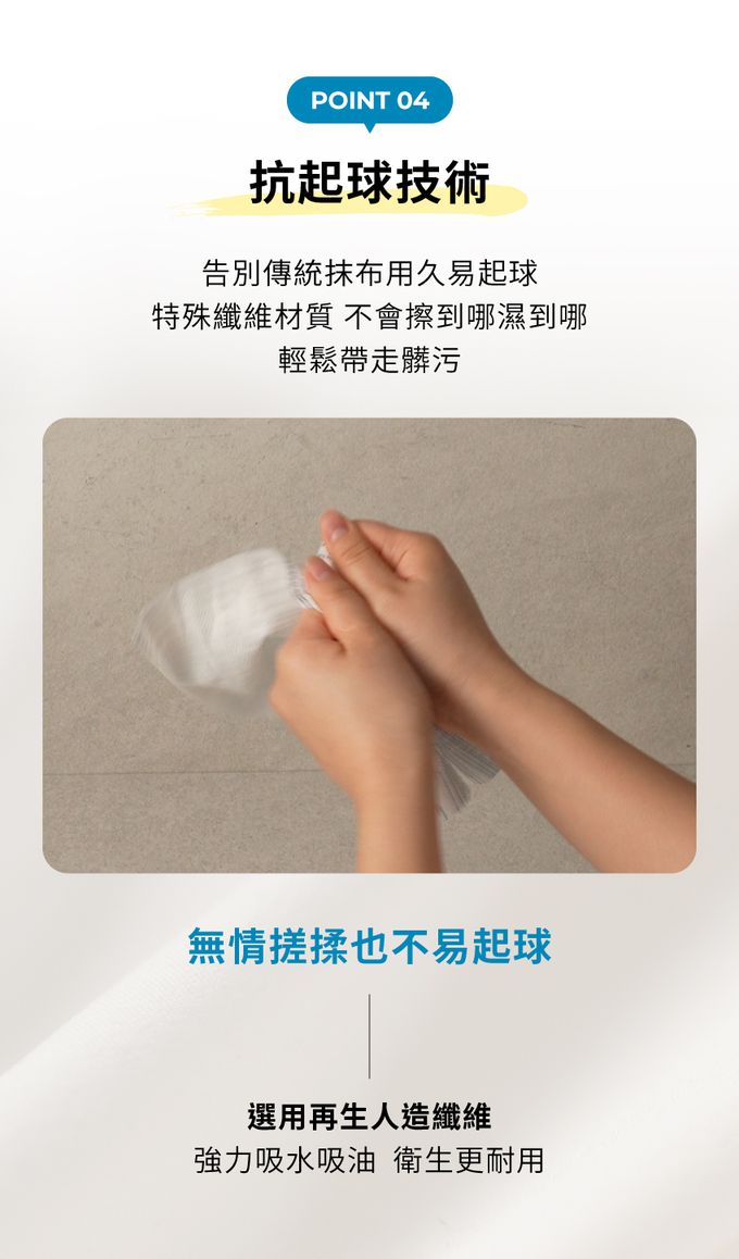 • 告別傳統抹布易濕黏、藏污納垢缺點