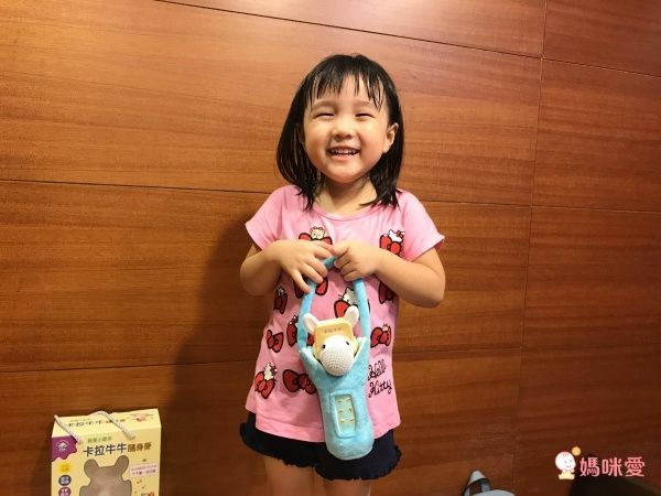 瞧荳荳拿到「卡拉牛牛」就像是得到全世界,笑開懷的樣子~