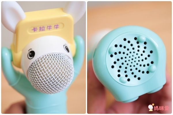 卡拉牛牛麥克風設計上,不容易受到干擾、而且抗噪音,所以可以擁有高品質的卡拉效果,尤其在無音樂的時候更明顯,絲毫沒有一點雜音!喇叭也很貼心的設計在底部,不怕小手擋到喔。
