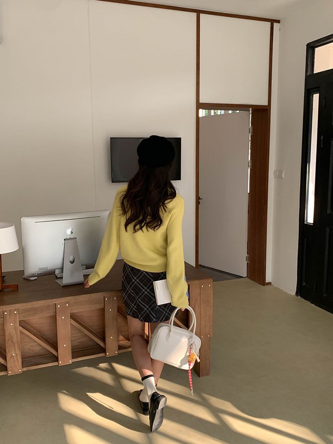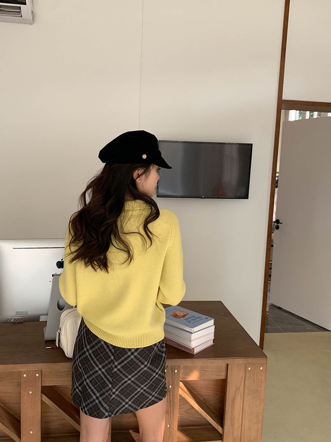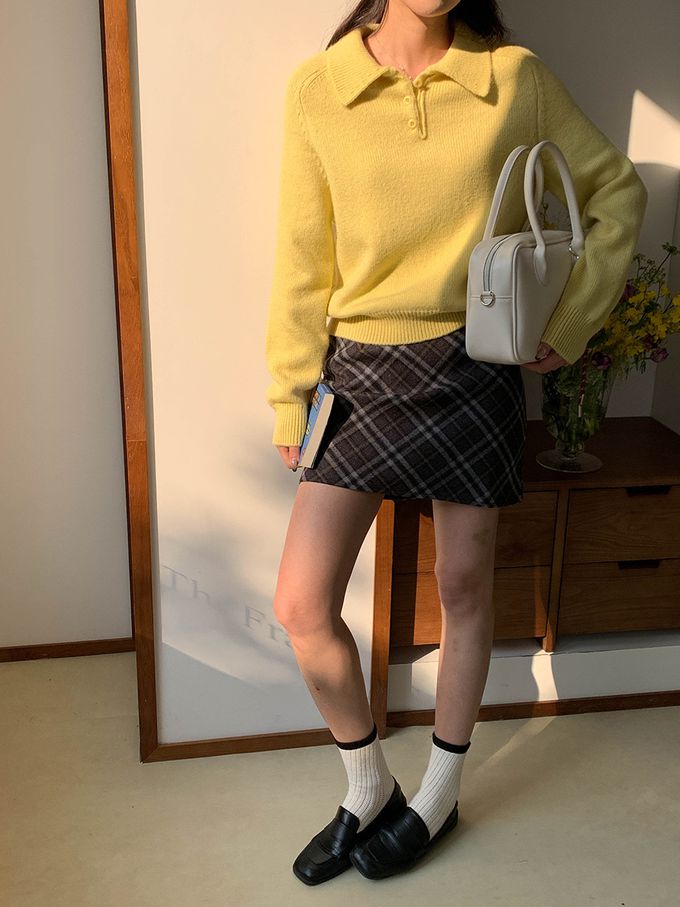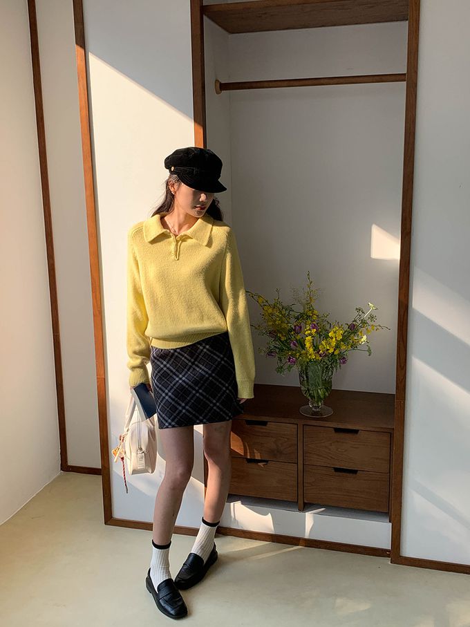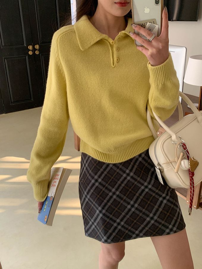 軟糯溫柔風polo翻領針織衫毛衣-黃色 (F)