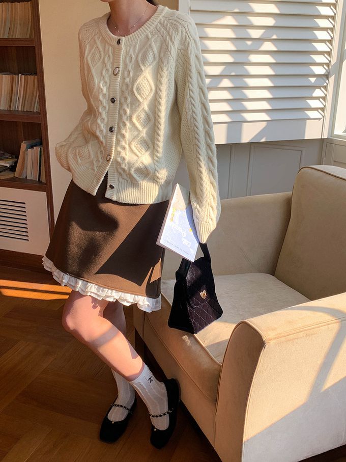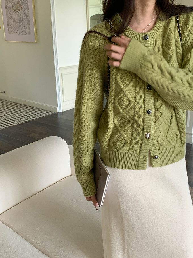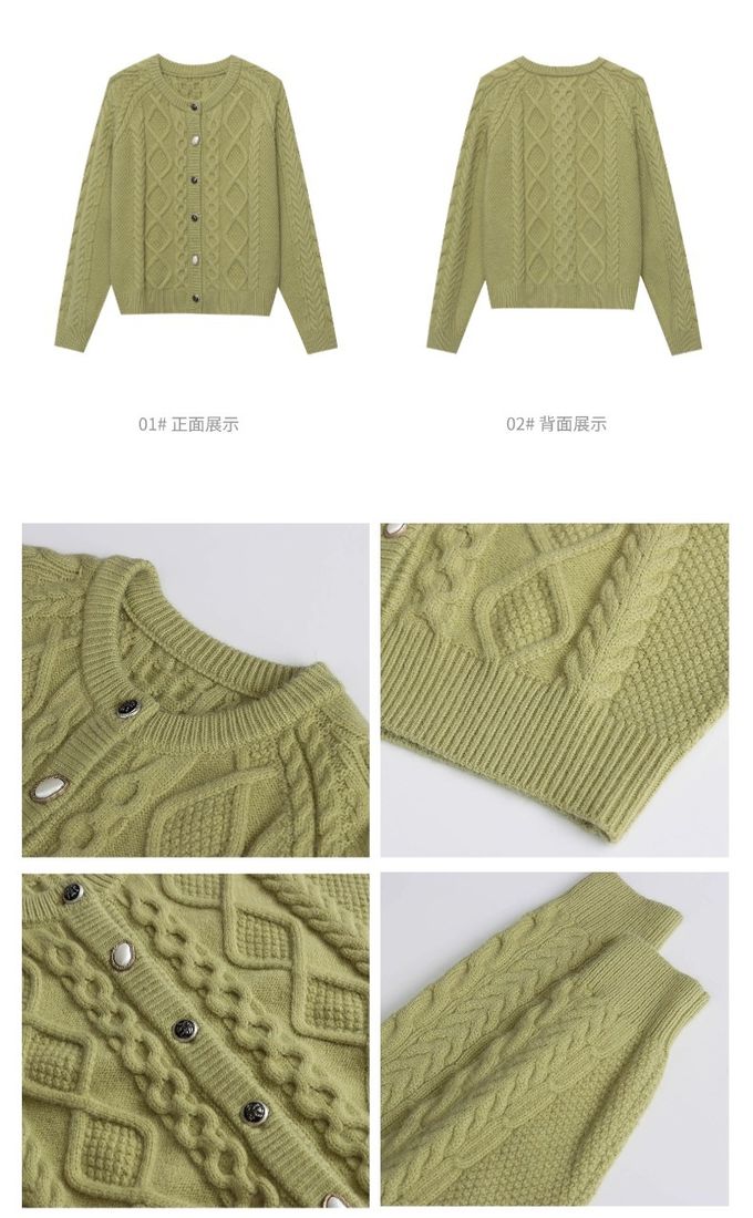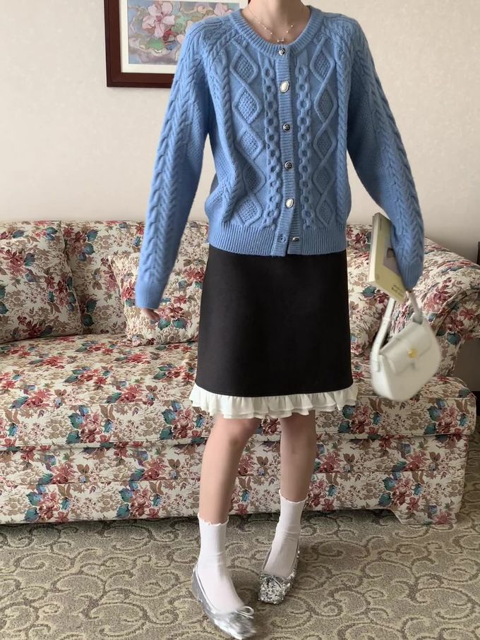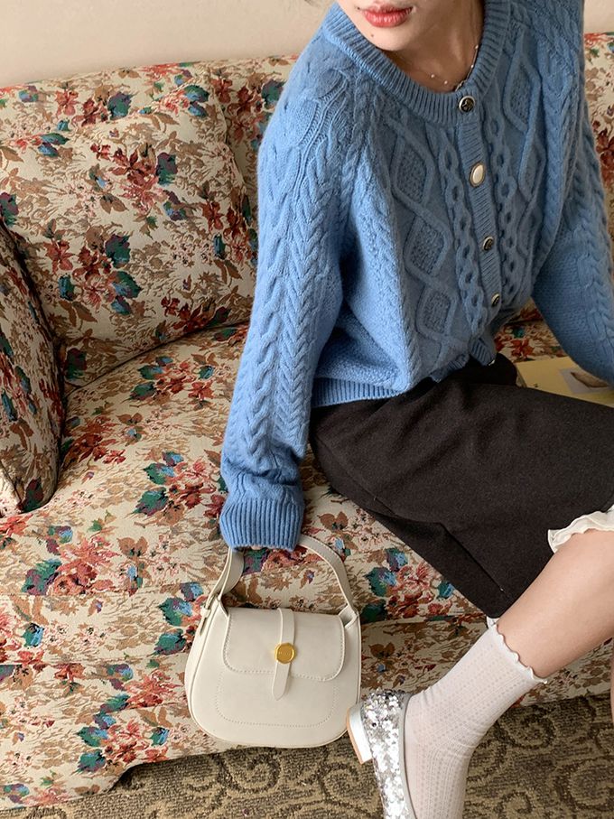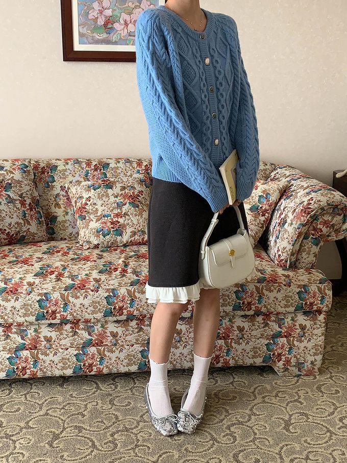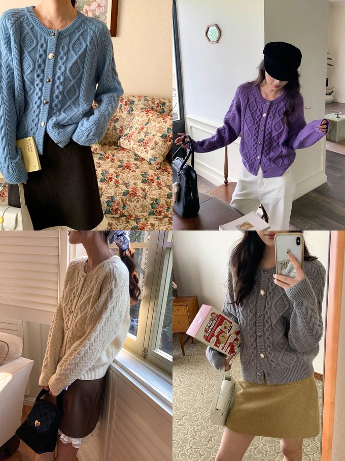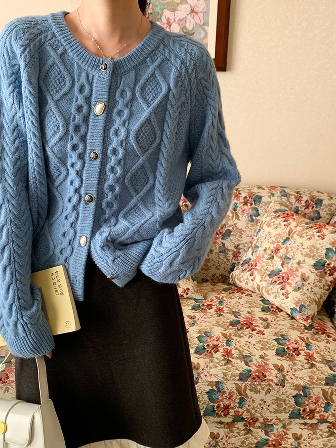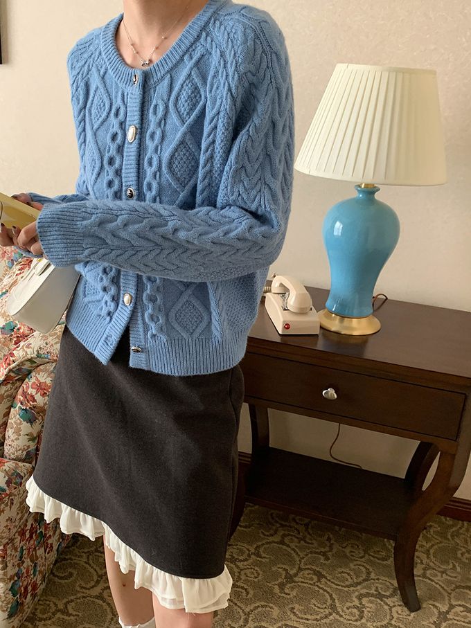 3th Morning - 設計感菱格紋麻花針織開襟衫-藍色 (F)