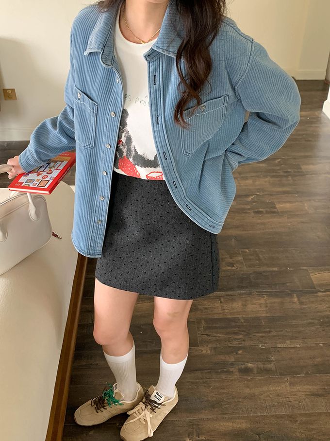 時髦感波點A字半身短裙-深灰