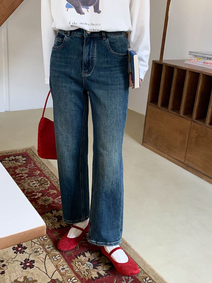 高腰+煙管直筒褲型,修飾線條、更顯腿長