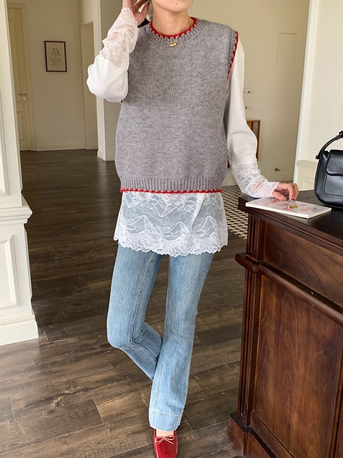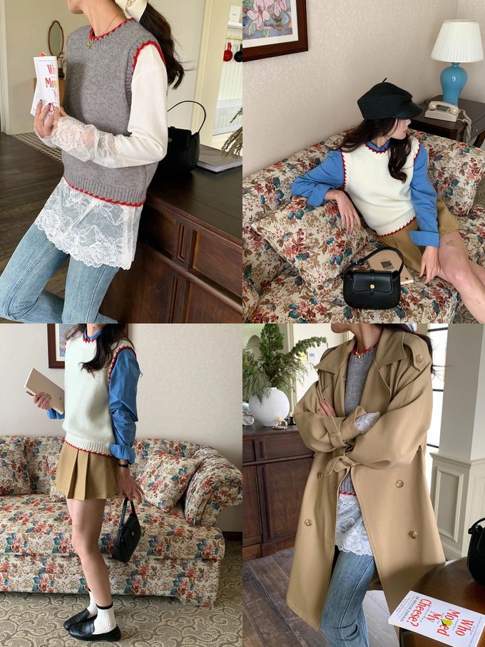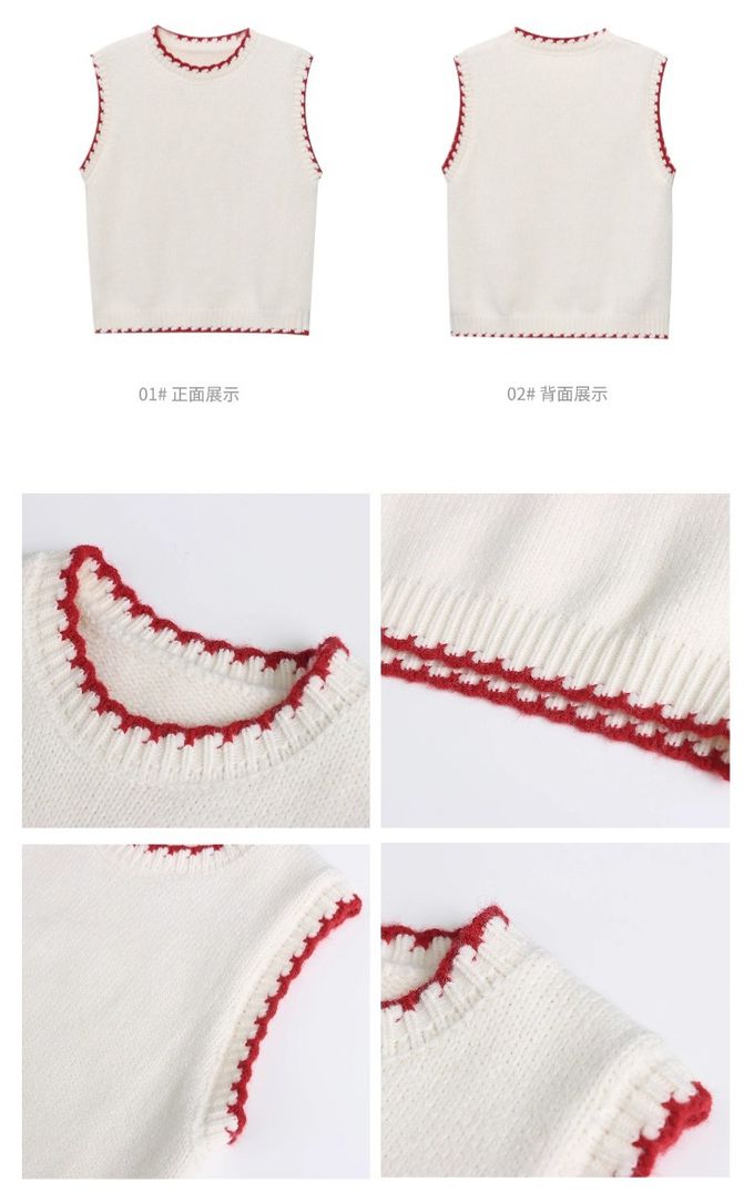品名:撞色縫邊圓領針織背心